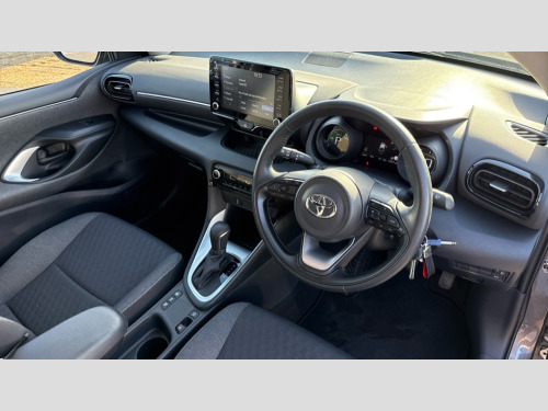 Toyota Yaris 1.5 Hybrid Design 5dr CVT Adaptive cruise control, Adjustable speed limit with speed warning, Bluetooth connectivity, Colour binocular inspired displays with digital speedometer, E-call, Electric power steering, Hybrid energy display, Multi information display switches on steering wheel, Reversing camera, Smartphone integration with Apple CarPlay and Android auto, Vehicle Stability Control (VSC), 4 speakers, 8" Multimedia display touch screen, USB connection, Acoustic windscreen glass, Automatic headlights, Automatic windscreen wipers with rain sensor, Body coloured door mirrors, Electric adjustable heated door mirrors, Follow me home headlights, Front auto power windows with anti jam protection, Full LED rear lights, LED daytime running lights, LED front fog lights, LED Headlights, LED High mounted stop lamp, Painted front grille, Rear auto power windows with anti jam protection, Rear privacy glass, Rear side wing doors, Rear spoiler, Rear wiper, Shark fin antenna, Turning signal integrated indicators in door mirrors, 3 adjustable rear headrests, 3 spoke leather steering wheel, 60/40 split folding rear seat, Active headrests, Adjustable boot height, Auto air conditioning, Coat hooks in rear grab handles, Cup holders (2 front & door), Data Communication Module (DCM) connected services, Fabric upholstery, Front armrest, Glovebox, Height adjustable driver's seat, Isofix seat fixing, Leather gearshift, Pollen filter, Shopping bag hooks, Single front passenger seat, Tilt/telescopic steering column, 3 point seatbelts on all rear seats, ABS+EBD+Brake assist, Electronic parking brake, Emergency brake light system (EBS), Front passenger airbag on/off switch, Front seatbelt reminder, Hill start assist control (HAC), Rear child proof door locks, Rear seat belt reminder, Supplemental Restraint System (SRS) 8 airbags: Driver & passenger's airbags, dual side curtain airbags, side impact airbags, front centre airbag, Toyota Safety Sense 2, Precollison + Night time Pedestrian & Cyclist Detection, Lane Trace Assist, Auto High Beam, Intelligent ACC & Road Sign Assist, Tyre pressure warning system, Alarm/immobiliser, Remote powered central double locking doors, Soft touch instrument panel, Space saver spare wheel