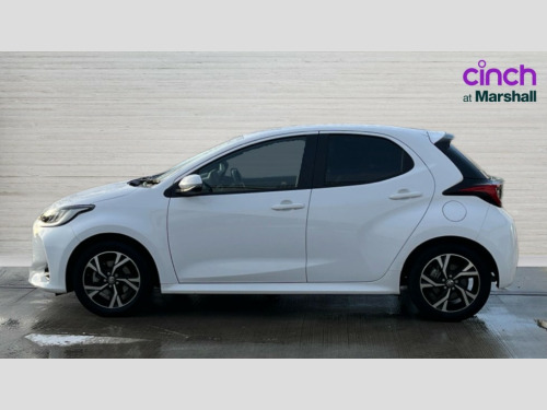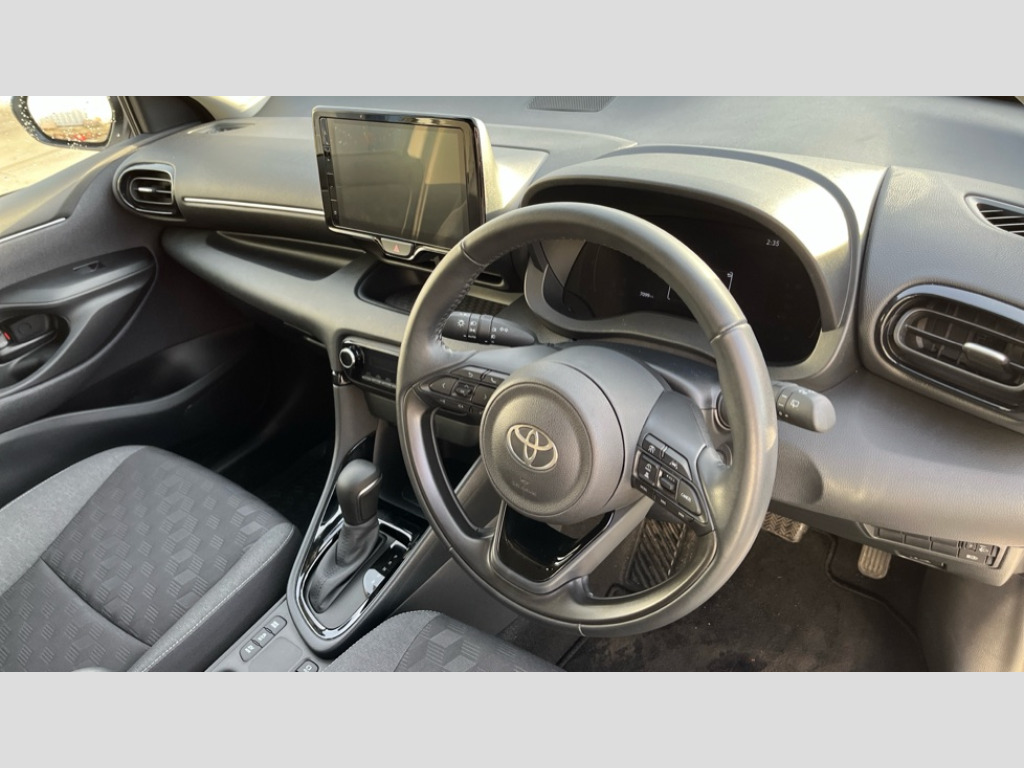 Toyota Yaris 1.5 Hybrid Design 5dr CVT 7" Digital Combimeter, Adaptive cruise control, Adjustable speed limit with speed warning, Bluetooth connectivity, Colour binocular inspired displays with digital speedometer, E-call, Electric power steering, Hybrid energy display, Multi information display switches on steering wheel, Reversing camera, Smartphone integration with Apple CarPlay and Android auto, Tailgate, Voice recognition, Vehicle Stability Control (VSC), 4 speakers, 9" Multimedia touch display, Toyota Touch 3 system with DAB radio, USB connection, Acoustic windscreen glass, Auto windscreen wipers, Automatic headlights, Body coloured door mirrors, Electric adjustable heated door mirrors, Follow me home headlights, Front auto power windows with anti jam protection, Full LED rear lights, LED daytime running lights, LED front fog lights, LED front light guide, LED Headlights, LED High mounted stop lamp, LED Indicators, LED rear light guide, Manual headlight levelling, Painted chequered front grille, Rain sensor, Rear auto power windows with anti jam protection, Rear privacy glass, Rear side wing doors, Rear spoiler, Rear wiper, Shark fin antenna, Turning signal integrated indicators in door mirrors, Variable front intermittent wipers, 3 adjustable rear headrests, 3 seat bench in 2nd row, 3 spoke leather steering wheel, 60/40 split folding rear seat, Active headrests, Adjustable boot height, Auto air conditioning, Coat hooks in rear grab handles, Cup holders (2 front & door), Data Communication Module (DCM) connected services, Fabric upholstery, Front armrest, Glovebox, Grey roof lining, Height adjustable driver's seat, Isofix seat fixing, Leather gearshift, Pollen filter, Shopping bag hooks, Single front passenger seat, Tilt/telescopic steering column, 3 point seatbelts on all rear seats, ABS+EBD+Brake assist, Electronic parking brake, Emergency brake light system (EBS), Front passenger airbag on/off switch, Front seatbelt reminder, Hill start assist control (HAC), Rear child proof door locks, Rear seat belt reminder, Supplemental Restraint System (SRS) 8 airbags: Driver & passenger's airbags, dual side curtain airbags, side impact airbags, front centre airbag, Toyota Safety Sense 3 with over the air updates, Tyre pressure warning system, 2x Master key, Alarm/immobiliser, Remote powered central double locking doors, Soft touch instrument panel, Space saver spare wheel