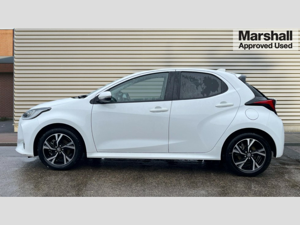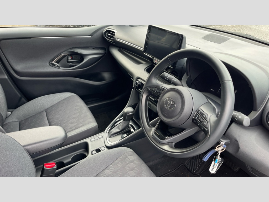 Toyota Yaris 1.5 Hybrid Design 5dr CVT Adaptive cruise control, Adjustable speed limit with speed warning, Bluetooth connectivity, Colour binocular inspired displays with digital speedometer, E-call, Electric power steering, Hybrid energy display, Multi information display switches on steering wheel, Reversing camera, Smartphone integration with Apple CarPlay and Android auto, Tailgate, Touch 2 navigation system, Voice recognition, Vehicle Stability Control (VSC), 4 speakers, 8" Multimedia display touch screen, Toyota Touch 2 with DAB, USB connection, Acoustic windscreen glass, Auto windscreen wipers, Automatic headlights, Body coloured door mirrors, Electric adjustable heated door mirrors, Follow me home headlights, Front auto power windows with anti jam protection, Full LED rear lights, LED daytime running lights, LED front fog lights, LED front light guide, LED Headlights, LED High mounted stop lamp, LED Indicators, LED rear light guide, Manual headlight levelling, Painted chequered front grille, Rain sensor, Rear auto power windows with anti jam protection, Rear privacy glass, Rear side wing doors, Rear spoiler, Rear wiper, Shark fin antenna, Turning signal integrated indicators in door mirrors, Variable front intermittent wipers, 3 adjustable rear headrests, 3 seat bench in 2nd row, 3 spoke leather steering wheel, 60/40 split folding rear seat, Active headrests, Adjustable boot height, Auto air conditioning, Coat hooks in rear grab handles, Cup holders (2 front & door), Data Communication Module (DCM) connected services, Fabric upholstery, Front armrest, Glovebox, Grey roof lining, Height adjustable driver's seat, Isofix seat fixing, Leather gearshift, Pollen filter, Shopping bag hooks, Single front passenger seat, Tilt/telescopic steering column, 3 point seatbelts on all rear seats, ABS+EBD+Brake assist, Electronic parking brake, Emergency brake light system (EBS), Front passenger airbag on/off switch, Front seatbelt reminder, Hill start assist control (HAC), Rear child proof door locks, Rear seat belt reminder, Supplemental Restraint System (SRS) 8 airbags: Driver & passenger's airbags, dual side curtain airbags, side impact airbags, front centre airbag, Toyota Safety Sense 2, Precollison + Night time Pedestrian & Cyclist Detection, Lane Trace Assist, Auto High Beam, Intelligent ACC & Road Sign Assist, Tyre pressure warning system, 2x Master key, Alarm/immobiliser, Remote powered central double locking doors, Soft touch instrument panel, Space saver spare wheel