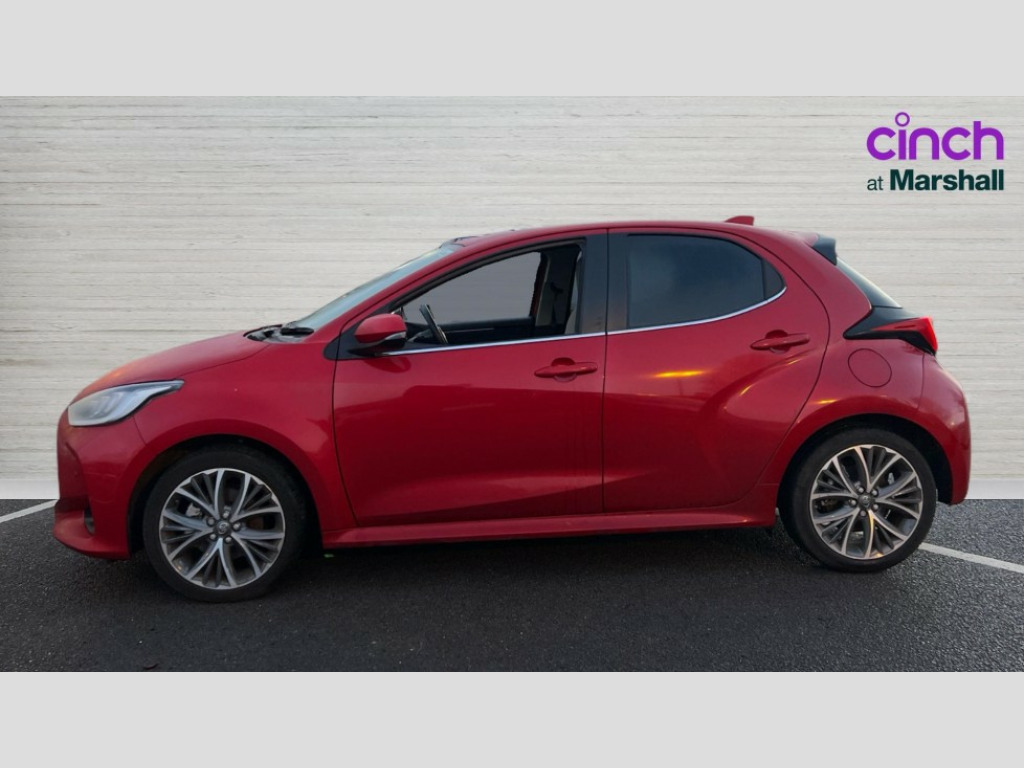Toyota Yaris 1.5 Hybrid Excel 5dr CVT Adaptive cruise control, Adjustable speed limit with speed warning, Blind spot monitoring, Bluetooth connectivity, Colour binocular inspired displays with digital speedometer, E-call, Electric power steering, Hybrid energy display, Multi information display switches on steering wheel, Reversing camera, Smartphone integration with Apple CarPlay and Android auto, Tailgate, Touch 2 navigation system, Voice recognition, Vehicle Stability Control (VSC), 6 speakers, 9" HD multimedia display touch screen with Toyota smart connect, USB connection, Acoustic windscreen glass, Auto windscreen wipers, Automatic headlights, Automatically retractable door mirrors, Body coloured door mirrors, Electric adjustable heated door mirrors, Follow me home headlights, Front auto power windows with anti jam protection, Full LED rear lights, LED daytime running lights, LED front fog lights, LED front light guide, LED Headlights, LED High mounted stop lamp, LED Indicators, LED rear light guide, Manual headlight levelling, Painted chequered front grille, Rain sensor, Rear auto power windows with anti jam protection, Rear privacy glass, Rear side wing doors, Rear spoiler, Rear wiper, Satin lower front grille, Shark fin antenna, Turning signal integrated indicators in door mirrors, Variable front intermittent wipers, 3 adjustable rear headrests, 3 seat bench in 2nd row, 3 spoke leather steering wheel, 60/40 split folding rear seat, Active headrests, Adjustable boot height, Coat hooks in rear grab handles, Cup holders (2 front & door), Data Communication Module (DCM) connected services, Dual zone automatic air conditioning, Fabric seat with partial synthetic leather upholstery, Front armrest, Front sport seats, Glovebox, Grey roof lining, Height adjustable driver's seat, Height adjustable passenger seat, Isofix seat fixing, Leather gearshift, Map pockets on the backs of the front seats, Pollen filter, Shopping bag hooks, Single front passenger seat, Tilt/telescopic steering column, Parking pack - Yaris, 3 point seatbelts on all rear seats, ABS+EBD+Brake assist, Electronic parking brake, Emergency brake light system (EBS), Front passenger airbag on/off switch, Front seatbelt reminder, Hill start assist control (HAC), Rear child proof door locks, Rear seat belt reminder, Supplemental Restraint System (SRS) 8 airbags: Driver & passenger's airbags, dual side curtain airbags, side impact airbags, front centre airbag, Toyota Safety Sense 2, Precollison + Night time Pedestrian & Cyclist Detection, Lane Trace Assist, Auto High Beam, Intelligent ACC & Road Sign Assist, Tyre pressure warning system, 2x Master key, Alarm/immobiliser, Keyless smart entry with push button start, Remote AC via MyT, Remote locking via MyT, Remote powered central double locking doors, Satin chrome interior styling, Soft touch instrument panel, Space saver spare wheel