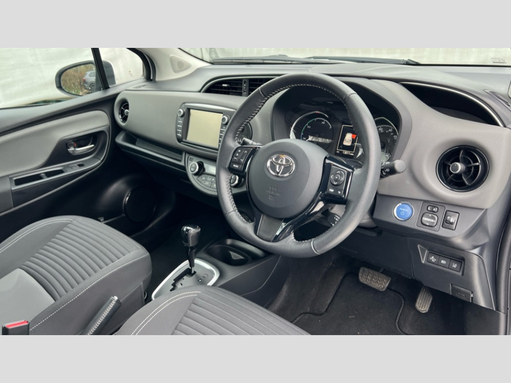 Toyota Yaris 1.5 Hybrid Icon 5dr CVT 4.2" coloured LED TFT multi information display, Analogue speedometer, Analogue tachometer, Auto speed limiter, Bluetooth connectivity, Cruise control, External temperature gauge, Fuel indicator with low level warning, Hybrid energy display, Hybrid system indicator, Key reminder warning, Lights on warning, Multi information display switches on steering wheel, Power Steering, Push button start, Reversing camera, Trip computer, 6 speakers, Auxiliary input socket, Steering wheel mounted audio/telephone switches, Toyota Touch 2 with DAB, USB connection, Auto up and down function on drivers window, Automatic wipers, Black lower front grille, Body colour bumpers, Body colour door handles, Body coloured door mirrors, Daytime running lights, Electric adjustable heated door mirrors, Electric front windows, Follow me home headlights, Front fog lights, Headlight cut-off reminder, LED High mounted stop lamp, Manual dimming rear view mirror, Projector headlights, Rain sensitive windscreen wipers, Rear combination lights bulb type, Rear window defogger, Rear wiper, Turning signal integrated indicators in door mirrors, 12v power outlet - front, 3 adjustable rear headrests, 3 spoke leather steering wheel, 60/40 split folding rear seat, Active headrests, Boot light, Data Communication Module (DCM) connected services, Driver and front passenger personal light, Driver and front passenger Whiplash Injury Lessening seats, Driver/passenger vanity mirrors with covers, Dual zone automatic air conditioning, Front and rear cup holders, Front map reading lights, Front seats with lumbar support, Glovebox, Height adjustable driver's seat, Height adjustable front head restraints, Illuminated entry system, Isofix seat fixing, Leather gearshift, Leather parking brake handle, Map pockets on the backs of the front seats, Pollen filter, Removable rear parcel shelf, Sliding front seats, Soft touch inner door garnish, Spirit fabric upholstery, Tilt/telescopic steering column, 3 point seatbelts on all rear seats, ABS+EBD+Brake assist, Collision mitigation braking system, Emergency brake light system (EBS), Front passenger airbag on/off switch, Front seatbelt reminder, Height adjustable front seatbelts with pre-tensioners and load limiters, Hill start assist control (HAC), Rear child proof door locks, Rear seat belt reminder, Road sign information display, Seatbelt warning lamp and buzzer, Supplemental restraint system (SRS) airbags - 7 airbags including driver, front passenger, curtain, side and knee airbags, Toyota safety sense including Road sign assist, Pre collision system, auto high beam and lane departure alert), Tyre pressure warning system, Vehicle stability control VSC + traction control, Engine immobiliser, Power and remote door locking, Soft touch instrument panel, Space saver spare wheel