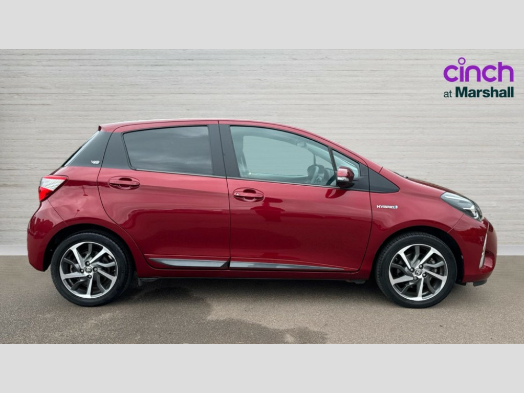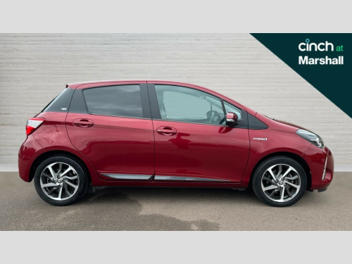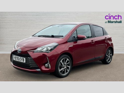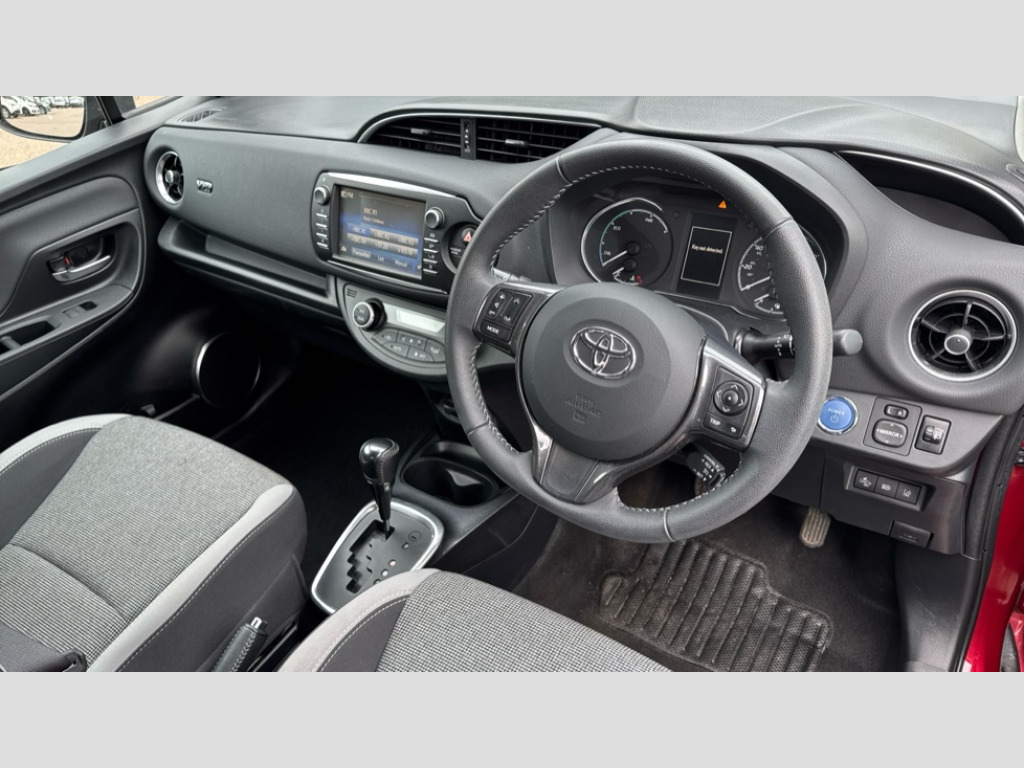Toyota Yaris 1.5 Hybrid Y20 5dr CVT [Bi-tone] 4.2" coloured LED TFT multi information display, Analogue speedometer, Analogue tachometer, Auto speed limiter, Bluetooth connectivity, Cruise control, External temperature gauge, Fuel indicator with low level warning, Hybrid energy display, Hybrid system indicator, Key reminder warning, Lights on warning, Multi information display switches on steering wheel, Power Steering, Push button start, Reversing camera, Trip computer, 6 speakers, Auxiliary input socket, Steering wheel mounted audio/telephone switches, Toyota Touch 2 with DAB, USB connection, Auto up and down function on drivers window, Automatic wipers, Bi-tone grey roof, Black lower front grille, Body colour bumpers, Body colour door handles, C pillar decal, Daytime running lights, Electric adjustable heated door mirrors, Electric front windows, Follow me home headlights, Front fog lights, Grey contrasting colour door mirrors, Grey door moulding, Grey door side sills, Grey front grille and fogs, Headlight cut-off reminder, LED High mounted stop lamp, Manual dimming rear view mirror, Privacy glass, Projector headlights, Rain sensitive windscreen wipers, Rear combination lights bulb type, Rear window defogger, Rear wiper, Turning signal integrated indicators in door mirrors, Y20 Badging, 12v power outlet - front, 3 adjustable rear headrests, 3 spoke leather steering wheel, 60/40 split folding rear seat, Active headrests, Boot light, Data Communication Module (DCM) connected services, Driver and front passenger personal light, Driver and front passenger Whiplash Injury Lessening seats, Dual zone automatic air conditioning, Fabric upholstery, Front and rear cup holders, Front map reading lights, Front seats with lumbar support, Glovebox, Height adjustable driver's seat, Height adjustable front head restraints, Illuminated entry system, Isofix seat fixing, Leather gearshift, Leather parking brake handle, Map pockets on the backs of the front seats, Pollen filter, Removable rear parcel shelf, Sliding front seats, Soft touch inner door garnish, Tilt/telescopic steering column, Y20 badge interior and in seat trim, 3 point seatbelts on all rear seats, ABS+EBD+Brake assist, Collision mitigation braking system, Emergency brake light system (EBS), Front passenger airbag on/off switch, Front seatbelt reminder, Height adjustable front seatbelts with pre-tensioners and load limiters, Hill start assist control (HAC), Rear child proof door locks, Rear seat belt reminder, Road sign information display, Seatbelt warning lamp and buzzer, Supplemental restraint system (SRS) airbags - 7 airbags including driver, front passenger, curtain, side and knee airbags, Toyota safety sense including Road sign assist, Pre collision system, auto high beam and lane departure alert), Tyre pressure warning system, Vehicle stability control VSC + traction control, Engine immobiliser, Power and remote door locking, Interior satin accents, Soft touch instrument panel, 16" 10 spoke grey machined alloy wheels, Space saver spare wheel
