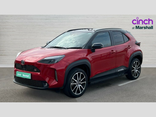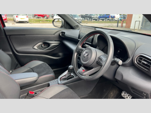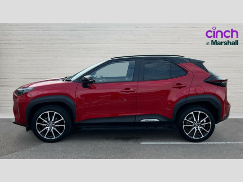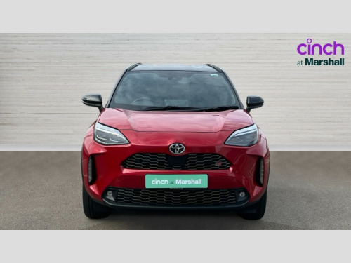 Toyota Yaris Cross 1.5 Hybrid GR Sport 5dr CVT 7" Multi information display screen, Adjustable speed limiter, Bluetooth connectivity, Driver attention alert system, eCall emergency system, Electric power steering, Full range intelligent adaptive cruise control, Hybrid system indicator, Key reminder warning, Lane trace assist, Multimedia, audio, telephone and voice recognition switches on steering wheel, My T Connected services, Pre-collision system enhanced with emergency steering assist, Reversing camera, Road sign assist - RSA, GR suspension tuning, Steering assisted vehicle stability control, 6 speakers, DAB Digital radio, USB connection, 3rd brake light, Acoustic windscreen glass, Aluminium roof rails, Anti-jam protection on power windows, Auto high beam [AHB] with on/off switch, Automatic headlights, Automatically retractable door mirrors, Black lower front grille, Black rear bumper, Black rear under run, Black Shark-fin antenna, Black wheel arch mouldings, Body colour door handles, Body colour front bumper, Dark chrome plated insert on upper front grille, Electric adjustable heated door mirrors, Electrochromatic auto dimming rear view mirror, Follow me home headlights, Front and rear electric windows with auto up/down function, Front intermittent wipers, Gloss black upper front grille, Headlight cut off reminder, Indicators integrated on door mirrors, Intermittent rear wiper, LED daytime running lights guide, LED front fog lights, LED front light guide, LED Indicators, LED projector headlights, LED rear light guide, Manual headlight levelling, Noise reduction layer on windscreen, Privacy glass, Rain sensor, Rear LED lights with sequential indicators, Rear side wing doors, Rear spoiler, Rear window defogger, 12v power outlet - front, 12V power point in boot, 2x Rear coat hooks, 3 seat bench in 2nd row, 3 spoke leather sports steering wheel, 40:20:40 split folding rear bench seat, Adjustable speed limiter switch on steering wheel, Black roof lining, Boot light, Central armrest, Centre console in light blue ambent lighting, Driver and front passenger personal lights, Driver and passenger seatback pockets, Dual zone automatic air conditioning, Fabric door trim, Footwell in light blue ambient lighting, Front console box, Front cup holders, Front head restraints, Front sport seats, Glovebox, GR scuff plates, Heated driver and passenger seats, Height adjustable driver's seat, Height adjustable front passenger seat, Hooks for luggage holding belts, ISOFIX child restraint system, Lane departure alert switch on steering control, Leather gearshift, Light blue ambient lighting on front doors, Light on driver and front passenger sun visor, Manual telescopic and tilting steering wheel, Mirror on driver and passenger sun visor, Nanoe-X air purifier, Perforated alcantara/leather upholstery, Pollen air filter, Power adjustable lumbar support on driver seat, Rear cup holders, Rear head restraints, Single front passenger seat, Soft tonneau cover, Storage box under boot floor, Tech pack - Yaris Cross, 3x3 point rear seat belts, ABS+EBD+Brake assist, Driver and passenger central airbags, Driver and passenger front airbags, Driver and passenger side airbags, Electronic parking brake, Emergency brake light system (EBS), Front seat belt reminder, Hill start assist control (HAC), Passenger airbag on/off switch, Pre-collision system with pedestrian and cyclist detection, Rear door child safety locks, Rear passenger side airbags, Rear seat belt reminder, Traction control, Tyre pressure warning system, Immobiliser, Intrusion alarm, Keyless smart entry with push button start, Power door locks, Power passenger window lock, Remote door lock, Tyre repair kit