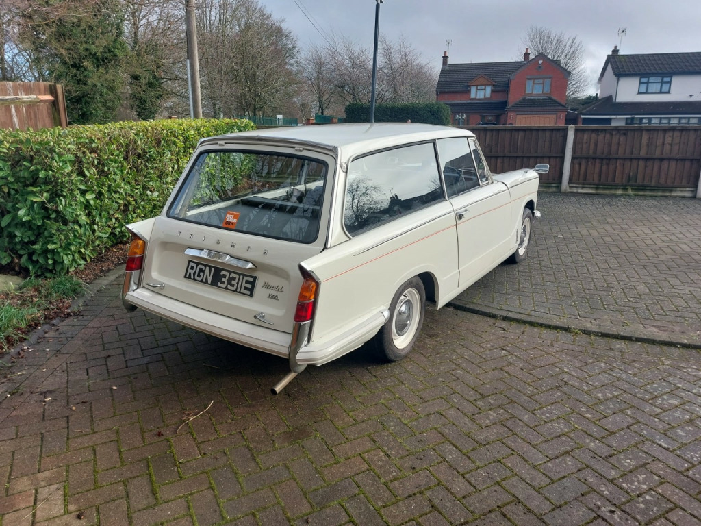 1967 Triumph Herald 1200 Estate. A rare, exceptionally documented classic with a remarkable Story, , Available soon is this charming and increasingly rare 1967 Triumph Herald 1200 Estate, a car with a genuinely fascinating history and an exceptional level of documentation. , The Herald was purchased new in 1967 from Greenwich Autos Ltd, Stockwell Street, London, by a gentleman who registered it under his business name, J. Nickells & Co Ltd, blind makers of Deptford, London. From the outset, the car enjoyed a gentle and respectful life. It was kept primarily for social use and occasional visits to local customers, while the owner relied on an Austin A35 van as his main business transport. As a result, the Herald was spared the hard working life that many estate cars endured. , The car was used regularly and enjoyed for 20 years, until 1987, when the original owner, then aged 86, made the decision to give up driving. From that point on, the Herald was laid up in the gentlemans garage at his home in Bromley, Kent, where it remained carefully stored for many years. , Ownership was transferred and a comprehensive and sympathetic recommissioning programme began, addressing the effects of long-term storage rather than neglect. This work included stripping down and rebuilding the front and rear suspension, along with the steering, and renewing the brake and fuel lines. Once the chassis and running gear had been properly attended to, the engine and transmission were carefully recommissioned to return the car to reliable road use. , In 2015, the car received a light cosmetic restoration, enhancing its appearance while preserving its originality and character Mechanical works undertaken included new front brake calipers, brake pads, track rod ends, ball joints, complete stainless steel exhaust and radial tyres. Since then, it has covered very few miles and today presents exactly as one would hope following such work, much as it would have done shortly after completion, honest, tidy, and full of period charm. , The car is accompanied by an outstanding comprehensive history file, containing numerous service and repair invoices, MOT certificates dating back to when the car was just four years old, old tax discs, the original owners handbook, and even an original Small Car magazine from 1962 featuring a detailed Triumph Herald profile and road test. As a particularly charming touch, a previous local owner kept a handwritten notebook recording every journey, distance covered, and fuel used, offering a wonderfully human insight into the cars life. , There have been just four previous owners from new. The car currently holds an MOT until October 2026 with no advisories, underlining its continued roadworthiness and careful upkeep. , Mechanically, the 1200cc engine is eager and willing, delivering the light, enjoyable driving experience for which the Herald is so well known. The estate body makes it both practical and distinctive, and the overall feel of the car is one of careful ownership rather than over-restoration. , This Triumph Herald Estate is not a concours showpiece, but something far better: a genuine, usable classic with real provenance, character, and heart. It represents a rare opportunity to own a beautifully documented piece of British motoring history, ready for its next custodian to continue the story.