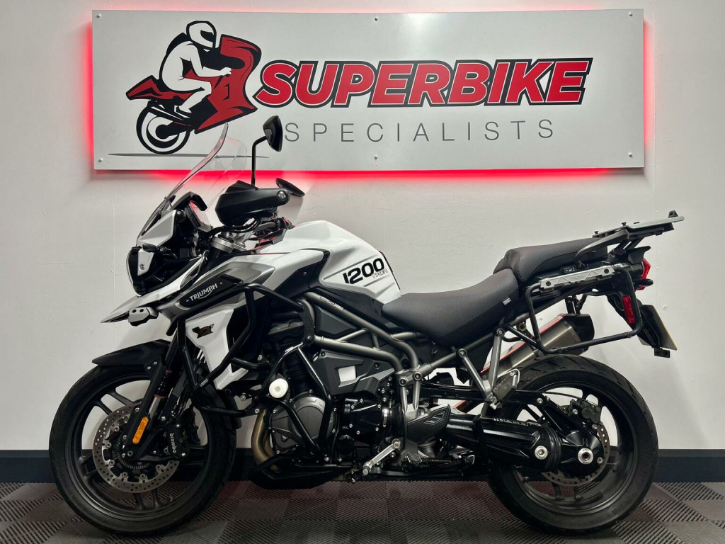 Introduced in 2018, the third-generation Triumph Tiger 1200 represents the very best of Triumphs adventure touring expertise. Renowned for its outstanding reliability, this flagship model offers an impressive level of standard equipment along with one of the most extensive accessory ranges in its class. Designed to compete head-to-head with the BMW GS, the Tiger 1200 delivers comfort, capability and long-distance confidence in equal measure. Power comes from Triumphs acclaimed 1215cc transverse three-cylinder engine, paired with smooth, low-maintenance shaft drive. Celebrated for its strong performance, flexibility and distinctive character, this unique triple-cylinder engine provides effortless touring ability with plenty of power on tap, making the Tiger 1200 equally at home on the open road or exploring further afield, This Example is spect to the limit!!, Its had recent service in September at 13,400 miles, thats 6 Stamps in the book, 1 keyless fob, 2 spare keys 2 alarm fobs (all matching to the luggage), Datatool S4 Alarm Kit, with the XRT its got up and down quick shift, heated front and rear seats, heated grips, electric front screen, semi active electronic adjustable suspension, colour TFT screen, IMU cornering ABS and traction control, cruise control, Cornering headlights. crash protection bars, 3 box triumph adventure alloy luggage, Arrow carbon tipped exhaust, Data tagged, fog lamps, Brembo front brake calipers, || At Superbike Specialists, we offer a top selection of HPI-clear used motorcycles (unless stated). Our bikes are mechanically prepared by passionate onsite mechanics, with a focus on exceptional customer service. Every bike includes a 30-day warranty, with options to extend to 6 or 12 months, a minimum of 6 months MOT, and a fresh service. UK mainland delivery starts at £50. Competitive finance and card payments are accepted. We are also an authorised Scorpion Datatool dealer, offering fully fitted S5 Thatcham-approved trackers from £299. ||