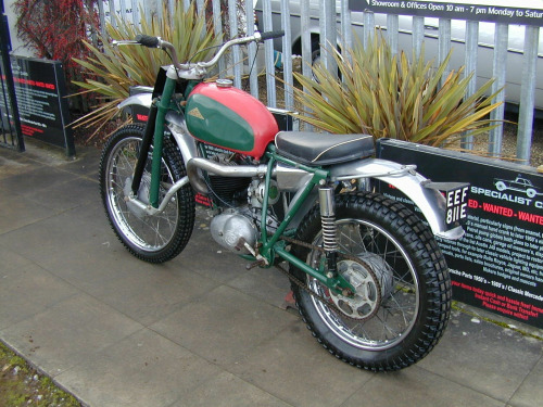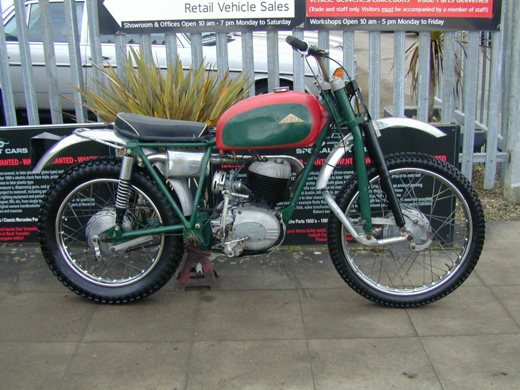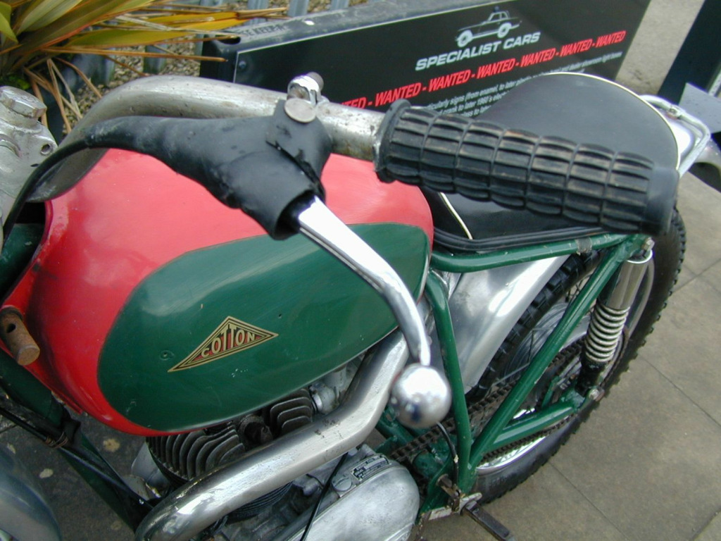 Cotton 250 (Villiers) Vintage Trails Bike Project, (Please note website pre sets awaiting amendment, (not a triumph street scrambler), , Features:-, , 1967 - E reg, On correct UK V5 reg document, Red and green , , Very rare early 1960`s Cotton trails bike, Believed to be one of a handful of factory build dealer demonstrators for showing to new front folk design, , , Carefully stored for many years and now ready to be recommissioned and restored, , Ultra rare and potentially very rewarding opportunity!, , £1,495, , , Call 01423 358686 for more details, Email specialistcars.net