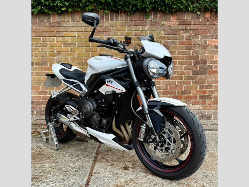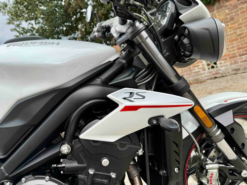 Triumph Street Triple 765RS , 2019 (69 plate), 6500 miles , Service history, last service at 5418 miles. 12 months mot. ABS (switchable) , LED daylight running lights, TFT screen , Rider modes, Traction control , Anti wheelie , Quick shifter , Brembo calipers , Showa 41mm Big Piston Forks, Ohlins STX40 rear shock , Slip-assisted clutch , Triumph Arrow exhaust. Triumph heated grips, Triumph fly screen, Evotech tail tidy, Evotech radiator guard. Evotech paddock stand bobbings. , In an amazing condition and the best colour - pearl white. , Viewing by appointment only, Braintree Essex. , No deposit finance available subject to status. PX welcome, Motorcycles/Cars etc, Delivery available at the buyers cost. , Tel: 07585118151