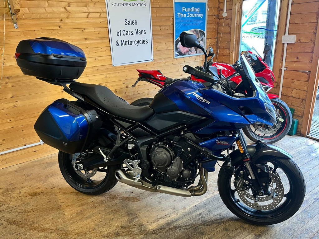 Just arrived Triumph Tiger Sport 660. This fantastic 1 owner example of the popular sports adventure bike has covered just 3024 miles from new having just been serviced and still under manufactures warranty. Loaded with factory options including complete colour matched pannier set and top box, heated grips, cruise control, crash bars with built in spot lights and quick shift gear change. Great fun, adventure, touring bike that presents excellent value and a big saving on new. , Call Martin for full details on this amazing motorcycle. 01227 722227, Part exchange car, van, motorcycle welcome. Finance available (subject to status), Fully HPI Clear and the Certificate Provided. Open 6 days a week (Sundays by appointment)