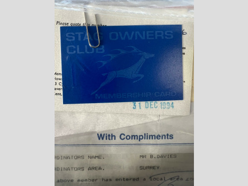 This 1977 Triumph Stag is a rare find having been owned by the last owner owning the stag for the last 40 years boasting a substantial history that speaks to its enduring appeal. Powered by a robust 3.0 litre petrol engine, this classic British motor car offers a driving experience that is both engaging and refined. Its timeless design, characteristic of the era, is complemented by a well preserved interior, reflecting careful ownership over the years.The Triumph Stag stands out from its contemporaries due to its distinctive V8 engine, a feature that sets it apart in terms of performance and sound. This particular example has been maintained with care, ensuring that its mechanicals are in good order. For those seeking a piece of automotive history with a touch of elegance and a powerful engine, this 1977 Stag presents a compelling proposition. This has just come out of long term storage stars runs and drives but will need recommissioning carbs need a tweak as running rough being sold as a ongoing project no test available looks great please call