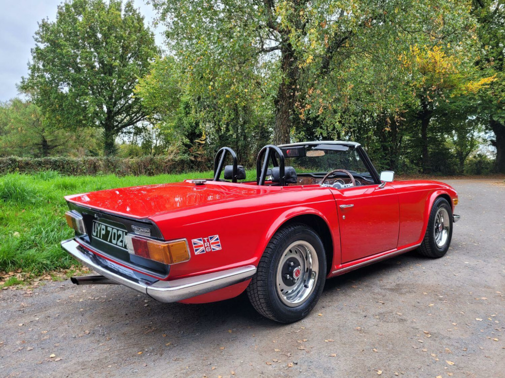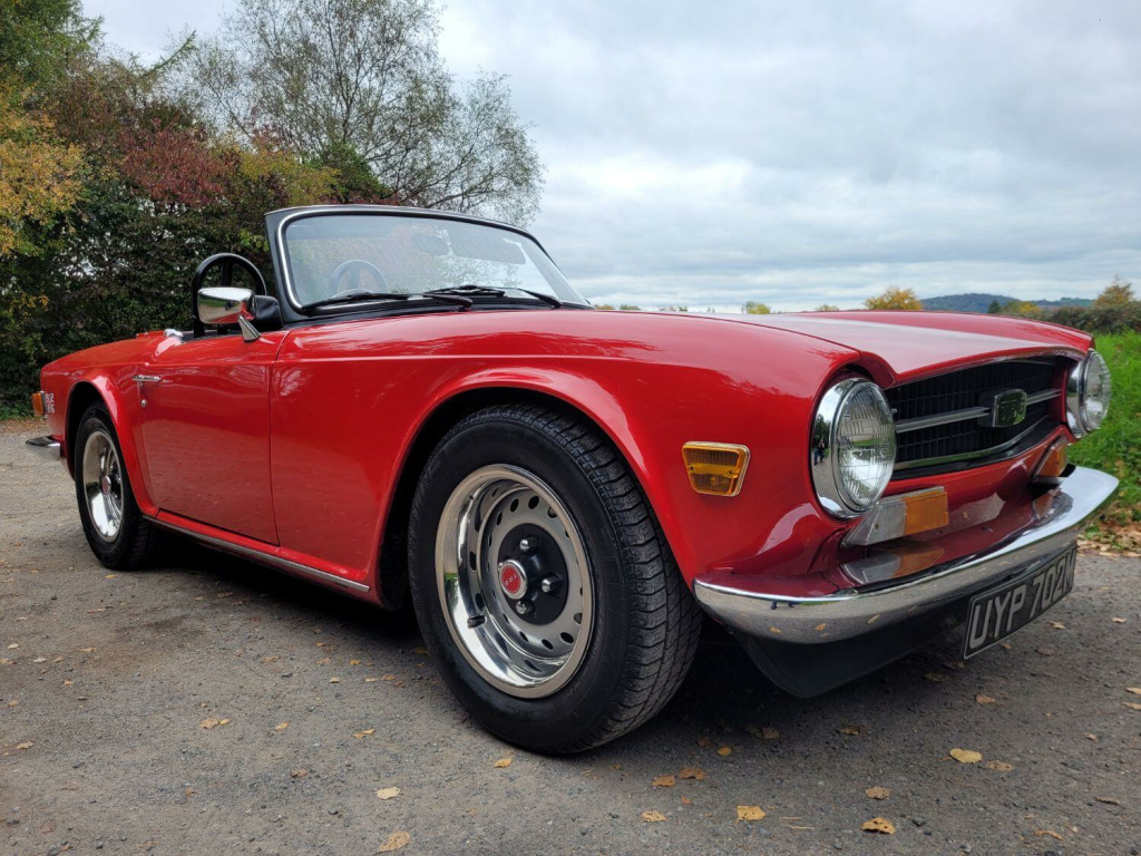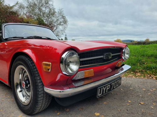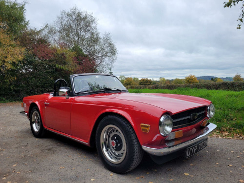 Incredible example of classic British motoring. This TR6 has undergone extensive restoration works totalling £25,000. It must be the cleanest example on the road today. Absolutely zero rust as it has been fitted with a brand new bodyshell in 1996 and barely covered 2,000 miles since. Along with a full chassis and suspension overhaul at the same time. , Restoration summary, - Gearbox/ overdrive rebuild 1995, - Full engine rebuild 1996, - New bodyshell fitted 1996 , - Full respray/ new interior/ Mohair roof fitted/ rewire 1998 , - Full suspension and chassis overhaul 1996 , - Reconditioning of the steering rack and brakes 1996, - Injectors recon 1999, - Gearbox reconditioned 2009 , - Fuel injector recon 2019 , , This incredible restoration totals up to just shy of £25,000 and the TR6 has barely covered 2,000 miles since, having been dry stored since then. , TAX AND MOT EXEMPT ,
