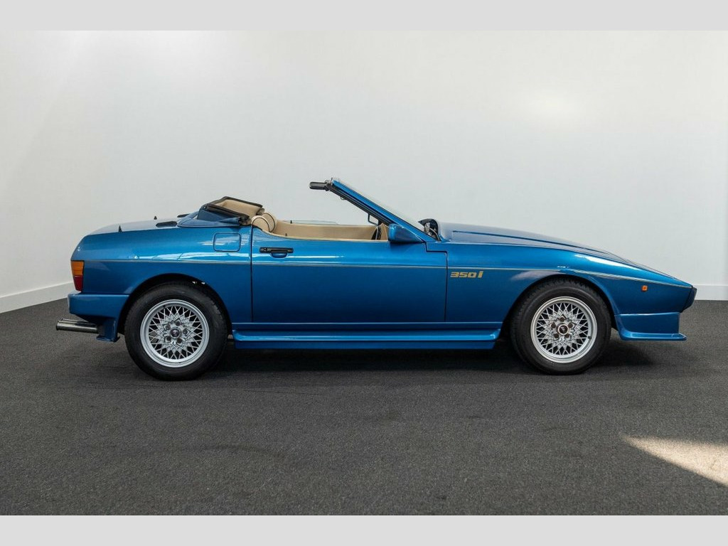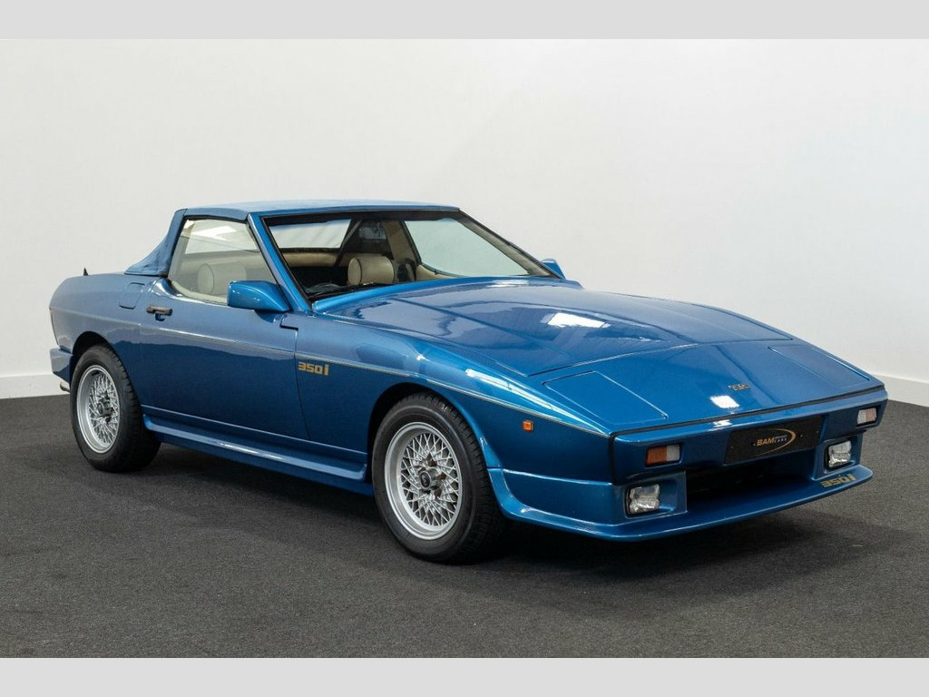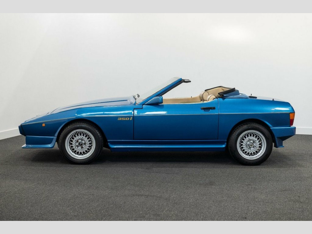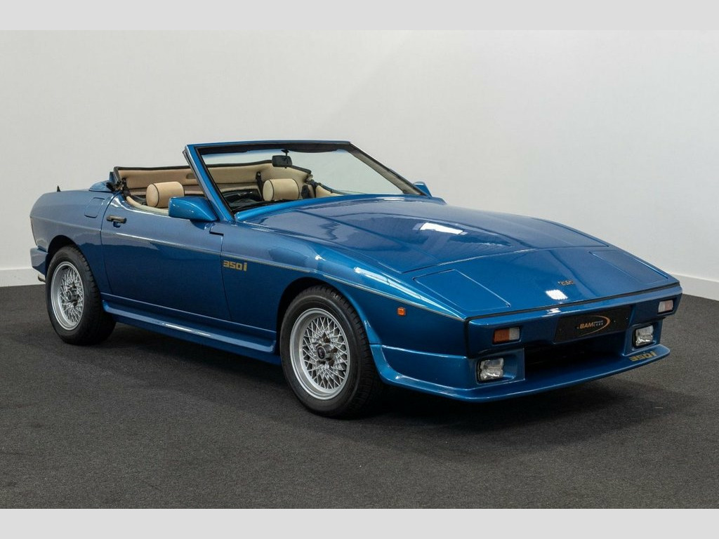 A fantastic opportunity to own what must be the best available example of a TVR Tasmin 350i, Featuring the Rover 3.5 V8 engine with 197 Bhp, 5 speed manual, First registered 23/02/1990 making it a late model, Finished in Azure blue with contras beige interior, 15" Cross spoke alloys, Blue fabric hood, Blue carpets with beige edging, Pioneers cassette tape player, Leather sports steering wheel, Veneer dashboard, Leather handbrake cover, Having had just one owner from new, and not only the only owner but the only person ever to drive the car. A very discerning lady owner has cherished this car like no other. It really has been part of her family for its entire life. The car returned regularly for service at the Blackpool factory until it's closure thereafter being serviced by a local specialist with no expense spared, When the interior veneers and leather required attention, it was sent to Rolls Royce in Crewe no less for the care attention that it deserved Having covered just 40525 miles from new, the car is in amazing condition from both underside and exterior, Inside the car, the beige leather complement the metallic blue paintwork very well, The exterior finish is superb and the mechanicals are all in perfect working order, Since we have had the pleasure of having the car in our ownership, we have looked at the option of a new convertible roof as the original was showing excessive fading, We will give this option of replacement to its new custodian.....Considerin