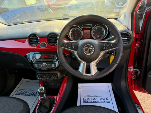 Vauxhall Adam 1.2 16v JAM – 12 Services | Low Miles | Great Condition Petrol | Manual | Euro 5 | 70 PS | 53,331 Miles | MOT Until 31-07-2026 This Vauxhall Adam 1.2 16v JAM is a clean, well-maintained example of Vauxhall's stylish and compact 3-door hatchback. With just 53,331 miles from new, only two owners, and an exceptional 12-service history, it has been cared for to a very high standard throughout its life. Powered by the reliable 1.2-litre petrol engine producing 70 PS, it delivers economical, easy-to-drive performance — ideal for new drivers, commuters, or anyone seeking a fun and affordable city car. Its small size and light steering make it perfectly suited to urban use. Finished in bright red with a dark cloth interior, this JAM model offers a stylish, modern look along with practical everyday comfort. A long MOT until July 2026 adds extra peace of mind. A lovely, well-kept example of the Vauxhall Adam — offering great reliability, low running costs, and a standout service record. 2015 VAUXHALL ADAM 1.2 16v JAM Hatchback 3dr is offered to you for sale in Pudsey, Leeds, finished in red this VAUXHALL ADAM 1.2 16v JAM Hatchback 3dr is one of many handpicked used cars that used car dealer, Catalina of Stanningley, Pudsey, Leeds have available for sale 12V Power Socket, 16in Alloy Wheels - Triple Cross In Mano, ABS - Anti-Lock Braking System, Air Conditioning, Air Recirculation System, Airbags - Deactivation Switch For Front , Airbags - Front Curtain, Airbags - Front Passenger, Airbags - Side Impact, Aux in Socket, Black B-Pillars, Body-Colour Door Handles, Brake Lights - Adaptive, Bumpers - Body Coloured, CBC - Cornering Brake Control, CD Player - with MP3 Compatability, Chrome Effect Interior Door Handles, City Mode Button - Provides Lighter Stee, Cruise Control with Speed Limiter, DAB Digital Radio, Daytime Running Lights, Door Mirrors - Body Colour, Door Mirrors - Electrically Adjustable-H, Door Pockets, Drinks Holder - x2 Rear Centre