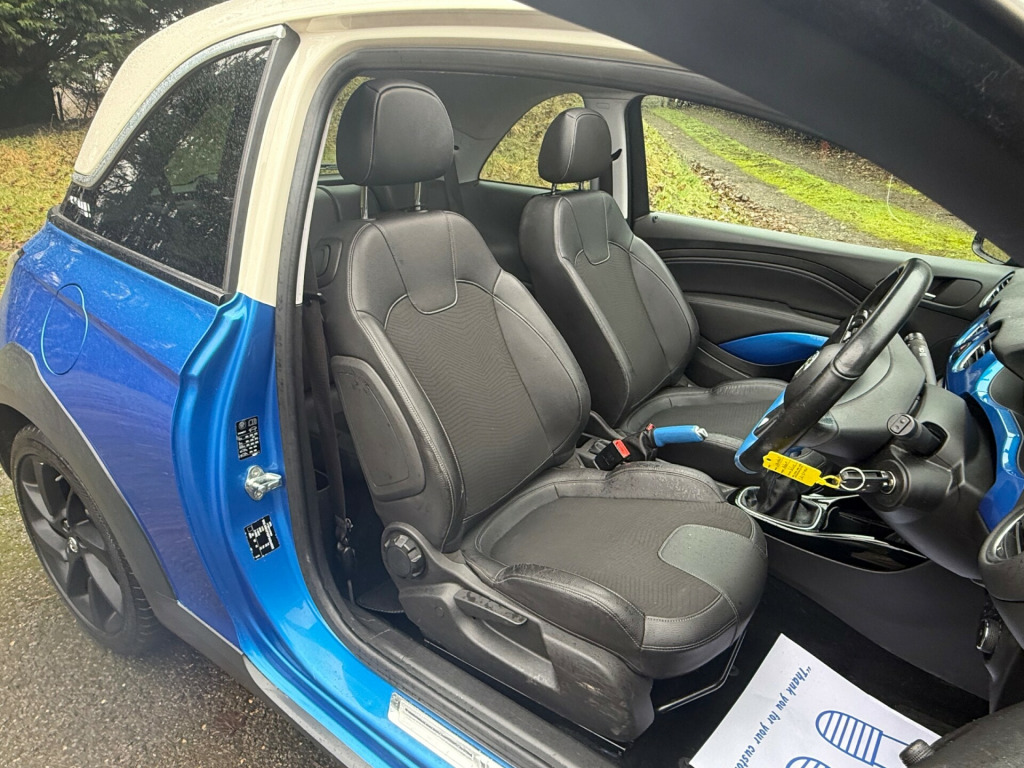 Carringtons are pleased to offer this 2015 Vauxhall Adam Rocks Air 1.2 Petrol Manual. This Adam is a 7 owner car (clearly a very popular car!) covered just over 79,000 miles, we have recorded services however is due now so we will carry out an oil service to bring it up to date. Current mot is short so it will also come supplied with a new mot upon point of sale. Rocks air model so benefits from good factory spec, this includes - 17'' Alloys - Touchscreen display with DAB radio/bluetooth phone/audio - Rear parking sensors - Part leather seats - A/C - Blue interior trims - Trip computer and USB/AUX to name a few. Presentable car for the age/mileage however please do expect the odd minor age related mark. We advise making an appointment to confirm availability to avoid disappointment. Any questions feel free to ask either via email or by calling our office on 01273 844433. PART EXCHANGE WELCOME. v power socket, aux in socket, cd player - with mp3 compatability, dab digital radio, mobile phone system with bluetooth connectivity, rds - radio data-traffic system, speakers - x7, usb connection with ipod control, 17in alloy wheels - swiss blade in sterling silver, black b-pillars, body-colour door handles with chrome-effect insert, bumpers - body coloured, chrome effect side window mouldings, door mirrors - body colour, door mirrors - electrically adjustable-heated, electric windows - front with one touch facility, locking wheel nuts, roof - electric folding canvas, roof - fabric - black, tinted glass, tyre inflation kit, windows - dark tinted rear, abs - anti-lock braking system, airbags - deactivation switch for front passengers, airbags - front curtain, airbags - front passenger, airbags - side impact, brake lights - adaptive, cbc - cornering brake control, deadlocks, drivers dual-stage airbag, eba - emergency brake assist, ebd - electronic brakeforce distribution, esp - electronic stability programme, hsa - hill start assist, isofix for outer rear seats, immobiliser, pedal release system, remote central locking, seatbelt unfastened warning, steering column - energy absorbing, straight line stability control, traction control, adjustable dashboard illumination, air conditioning, air recirculation system, chrome effect interior door handles, delay courtesy light function, door pockets, drinks holder - x2 rear centre console, drinks holder in centre console, front passengers seat height adjuster, front reading lights, gear knob - leather, glovebox - illuminated, glovebox - with shelf, grab handles - front, height adjustable front and rear headrests, illuminated boot, interior courtesy light operated by door switches, interior pollen filter, load compartment - cover, rear parcel shelf, seats - 50-50 split rear back, seats - drivers height adjustment, seats - drivers lumbar adjustment, steering wheel - height-reach adjustable, steering wheel - leather, steering wheel - mounted controls for audio, sunvisors - driver and passenger with vanity mirrors, city mode button - provides lighter steering at parking speeds, cruise control with speed limiter, pas - power assisted steering, speed limiter, trip computer, tyre pressure monitoring system, daytime running lights - led, tail lights - led