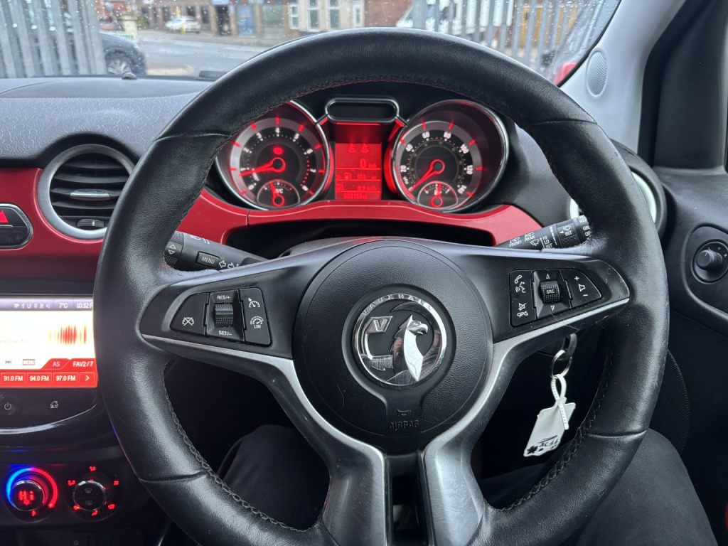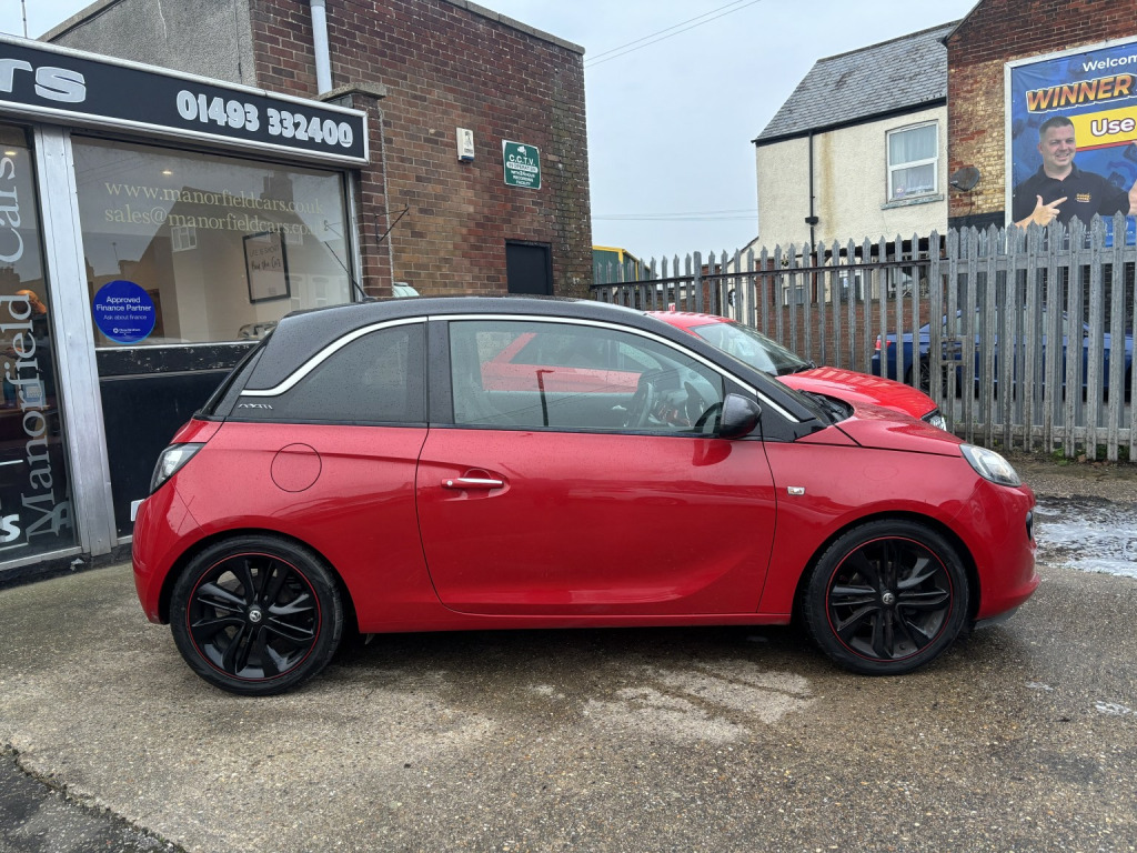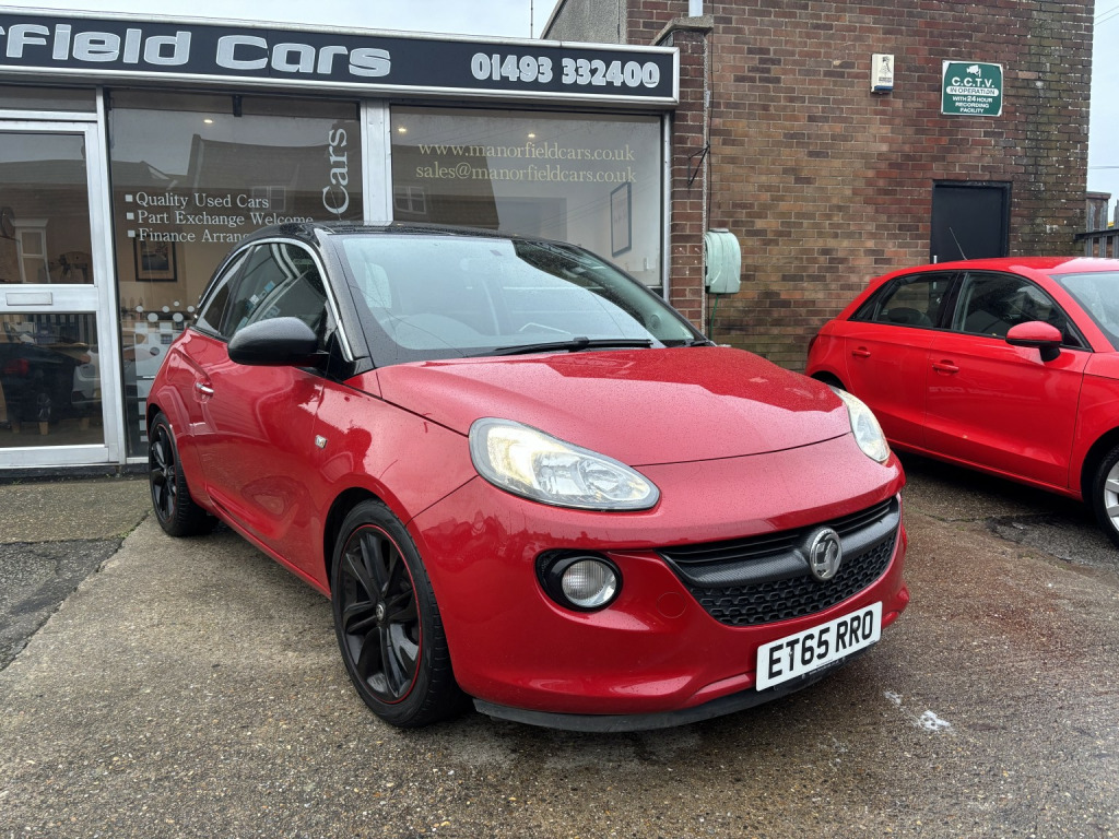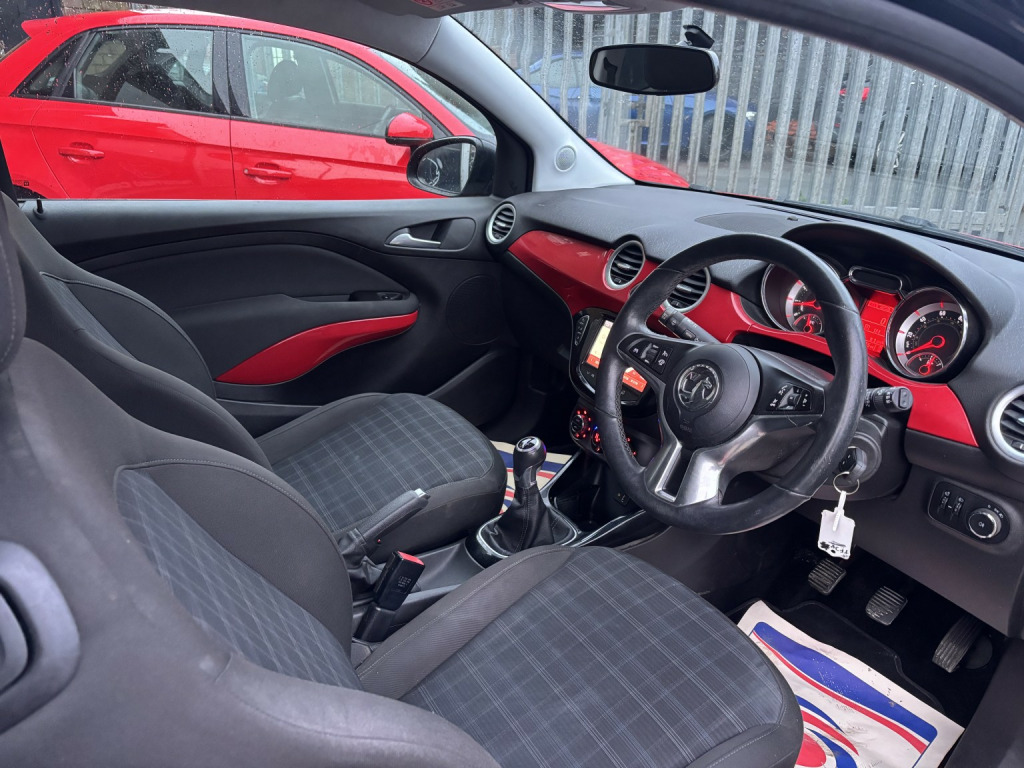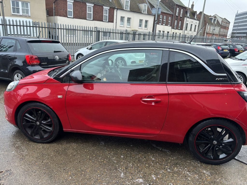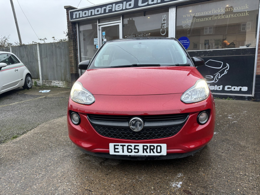 vauxhall Adam I glam, 1.2l petrol, 5 speed manual transmission, 69,000 miles, 3 door, finished in red, digital service history as photographed, sold with a years MOT, one key and bookpack.