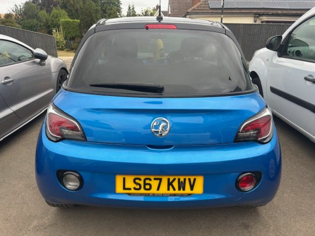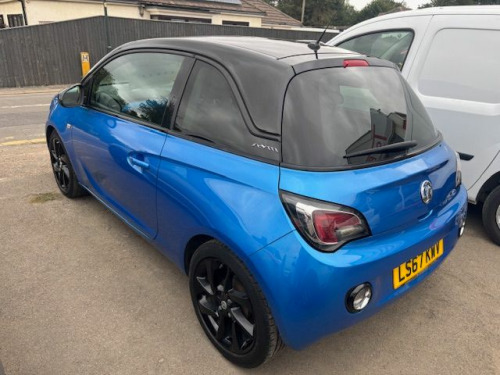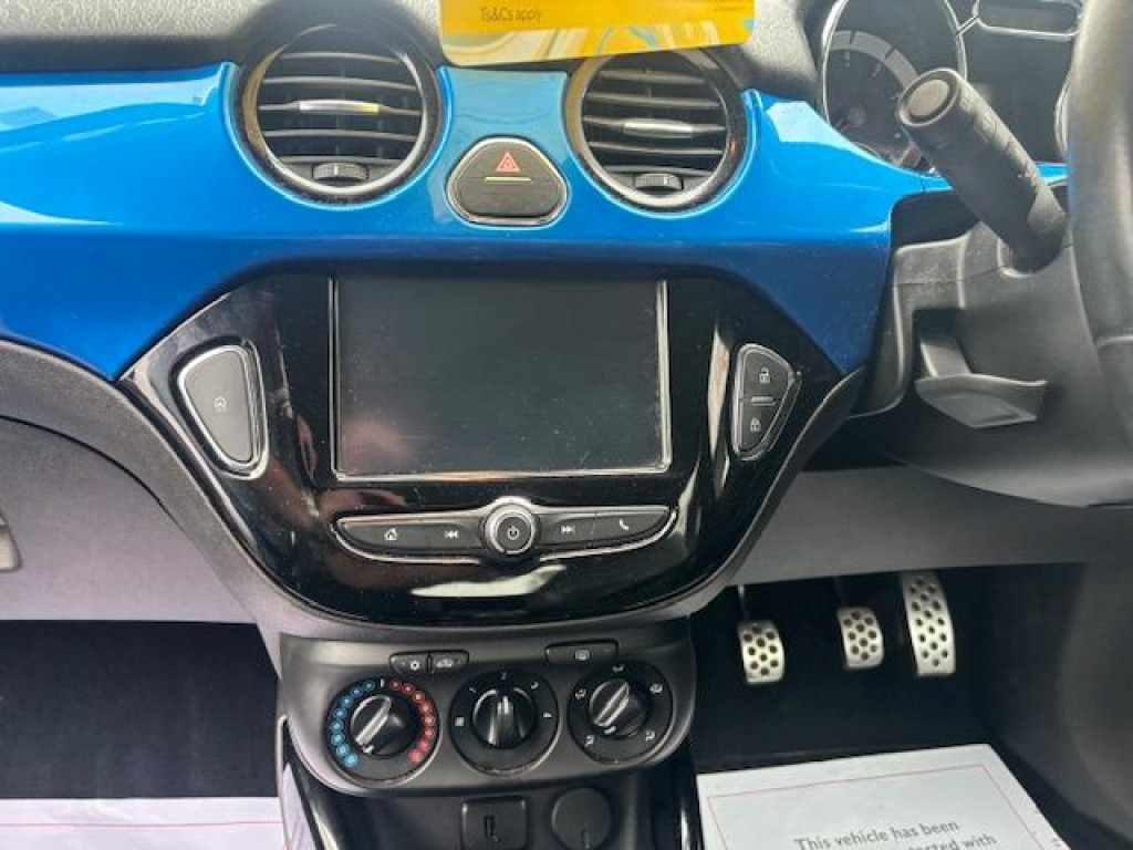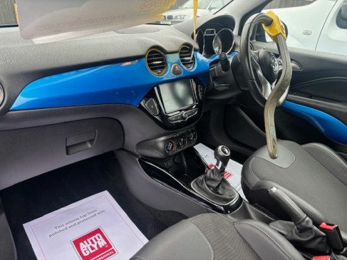VAUXHALL ADAM 1.2 ENERGISED FINISH IN LET IT BLUE METALLIC WITH BLACK ROOF CONTRASTING PART BLACK LEATHER  AND MIRROR BACKS ELECTRIC WINDOWS ELECTRIC MIRRORS CRUISE CONTROL SPEED LIMITER AIR CONDITIONING TOUCHSCREEN INFOTAINMENT WITH USB FOR NAVIGATION CAPABILITY AND GLOSS BLACK ALLOY WHEELS