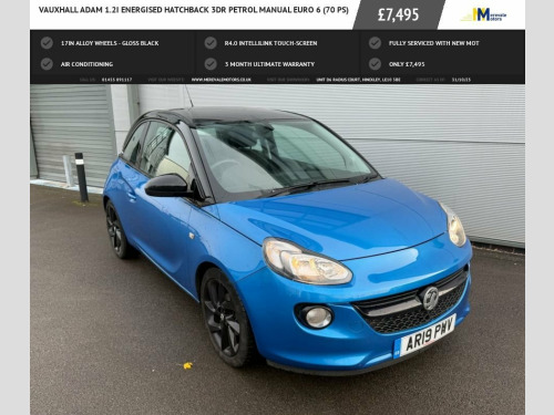 THIS 2019 VAUXHALL ADAM I ENERGISED PRESENTS AN EXCEPTIONAL OPPORTUNITY WITH ITS REMARKABLY LOW MILEAGE OF JUST 37,331 MILES FOR ITS AGE. THIS EURO 6 COMPLIANT 1.2L PETROL MODEL BOASTS A FULL SERVICE HISTORY, ENSURING ITS PROVENANCE IS WELL DOCUMENTED. FOR YOUR PEACE OF MIND, IT COMES WITH A 3 MONTH WARRANTY AND A 12 MONTH MOT PROVIDED ON PURCHASE. INSIDE, YOU'LL FIND THE R4.0 INTELLILINK TOUCH SCREEN INFOTAINMENT SYSTEM, COMPLETE WITH ANDROID AUTO, APPLE CARPLAY, AND BLUETOOTH CONNECTIVITY, ALONGSIDE AIR CONDITIONING TO KEEP YOU COMFORTABLE. THE EASY ENTRY FRONT SEATS WITH MEMORY FUNCTION ADD A TOUCH OF CONVENIENCE. THE ENERGISED TRIM LEVEL IS DESIGNED TO OFFER A SUPERIOR EXPERIENCE COMPARED TO OTHER VEHICLES IN ITS CLASS. ITS LOW INSURANCE GROUP RATING IS A SIGNIFICANT ADVANTAGE, POTENTIALLY SAVING YOU MONEY ON RUNNING COSTS. THIS VAUXHALL ADAM IS A WELL MAINTAINED AND FEATURE RICH OPTION, OFFERING A BLEND OF PRACTICALITY AND MODERN TECHNOLOGY FOR EVERYDAY DRIVING. FINANCE IS AVAILABLE AND WE CAN BUILD A PACKAGE TO SUIT YOUR INDIVIDUAL NEEDS, JUST VISIT OUR WEBSITE AND CLICK ON APPLY FOR FINANCE TO USE THE FREE ELIGIBILITY CHECKER AND THEN SIMPLY HIT APPLY AND ENTER YOUR DETAILS. INCLUDED IN THE SCREEN PRICE IS AN ULTIMATE WARRANTY WHICH INCLUDES BREAKDOWN COVER AND HOME START WHICH YOU CAN EXTEND THIS FOR JUST A SMALL COST. ALL OUR VEHICLES ARE MECHANICALLY INSPECTED BY INDEPENDENT CONTRACTORS IN ADDITION TO EXTENSIVE BACKGROUND AND MILEAGE CHECKS PRIOR TO SALE .. HP 17in Alloy Wheels - Hurricane - Gloss Bl, Air Conditioning, R4.0 IntelliLink Touch-Screen Infotainme, City Mode Button - Provides Lighter Stee, Tinted Windows, ABS - Anti-Lock Braking System, 12-Volt Electrical Accessory Socket, Adjustable Outer Rear Seat Head Restrain, Airbag - Drivers, Airbags - Front Passenger, Airbags - Front Seat Side-Impact, Anti-Submarining Ramps in Front Seats, Black B-Pillars, Black Door Panels with Black Leather-Eff, Black Jack Roof Colour Pack, Body-Colour Door Handles, Bonnet-Headlight-Wiper Structure, Central Facia Display, Central Front Courtesy Light, Central Locking Activation Switch on Fac, Chrome Effect Interior Door Handles, Comfort Front Seats, Cruise Con