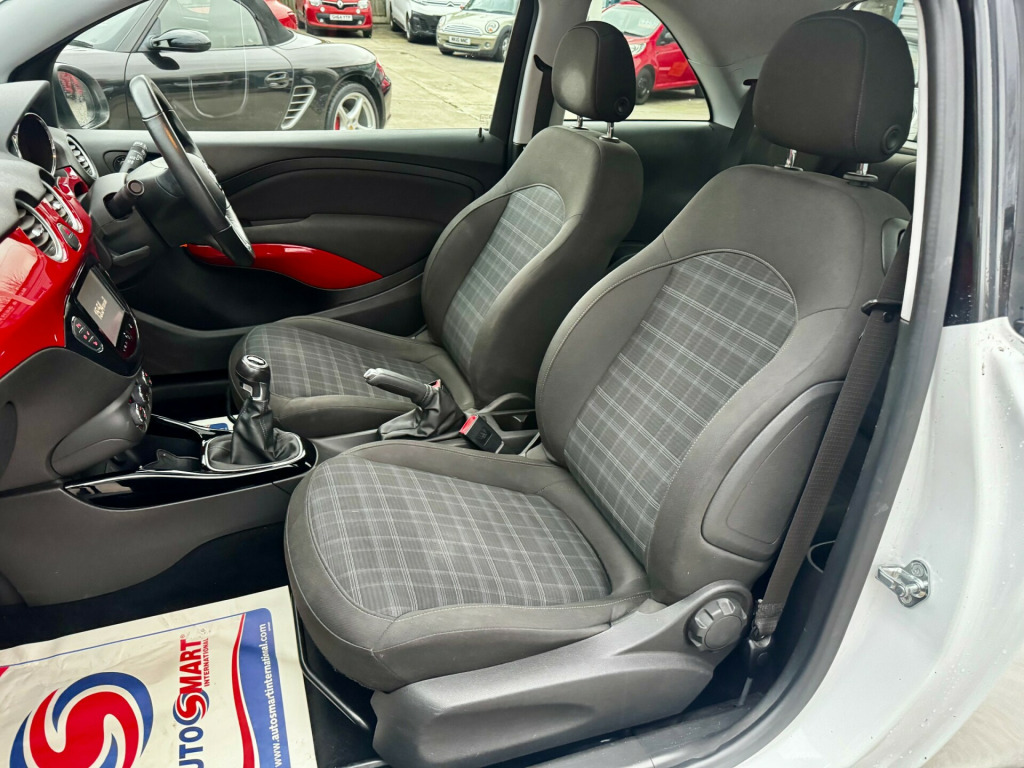 VAUXHALL ADAM GLAM - HIGH SPEC - STYLE PACKS - WHITE?2015 (65) 1.2 Petrol 5-Speed Manual 3-Door Hatchback Manchester Black / WhiteA very well-specified Vauxhall ADAM GLAM, finished in White with contrasting black styling. Packed with factory options and visual upgrades, this ADAM stands out from the crowd and offers low running costs, easy driving and great looks. Ideal as a first car, city car or stylish daily runaround.Key Features: - 1.2 Petrol Engine- 5-Speed Manual Gearbox- GLAM Specification- Heated Seats- White Exterior with ''I'll Be Black'' Roof- 17'' Swiss Blade Alloy Wheels - Red 'n' Roll Detailing- Winter Pack- Technical Pack- Carbon Fibre Front Grille Bar- Carbon Fibre-Effect Interior Details- Remote Control Ultrasonic Alarm- High-Gloss Black Exterior Styling- Air Conditioning- Cruise Control & Speed Limiter- Multi-Function Steering Wheel- Electric Windows & Mirrors- ISOFIX Child Seat Mounting PointsEconomy & Ownership:- MOT Valid Until 11/2026- £165 Annual Road Tax- Low insurance group- Cheap to run and insure- Easy to drive and park- Stylish and distinctive designPeace of Mind Included:- Fully Serviced & Ready To Go- Multi-Point Inspection Completed- RAC Warranty Included- 12 Months RAC Breakdown Assistance- Part-Exchange Welcome- Finance Options Available- Nationwide Delivery AvailableCall Now to Arrange a Viewing or Test Drive?V5 Present - HPI Clear - Drives Very WellCondition commensurate with age and mileage - a very tidy, well-optioned ADAM that looks great on the road.www.regalcar.co.uk v power socket, 20 watts per channel output, aux in socket, cd player - with mp3 compatability, dab digital radio, mobile phone system with bluetooth connectivity, rds - radio data-traffic system, radio - am-fm with 36 station presets, speakers - x6, usb connection with ipod control, 16in alloy wheels - vintage in silver, black b-pillars, body-colour door handles with chrome-effect insert, bumpers - body coloured, chrome effect side window mouldings, door mirrors - body colour, door mirrors - electrically adjustable-heated, door sills - chrome effect front, electric windows - front with safety autoreverse and one touch facility, exterior light pack, heated rear window with automatic timed cut-off, laminated windscreen, locking wheel nuts, plastic lower front bumper stiffener, roof - body colour, roof - fixed glass panel with sliding blind, tinted glass, tyre inflation kit, abs - anti-lock braking system, airbags - deactivation switch for front passengers, airbags - front curtain, airbags - front passenger, airbags - rear curtain, airbags - side impact, brake lights - adaptive, cbc - cornering brake control, collapsible windscreen wiper system, deadlocks, deformation zones front and rear, drivers airbag, drivers and front passengers internal central locking switch, drivers and front passengers lap belt pretensioner system, eba - emergency brake assist, ebd - electronic brakeforce distribution, esp - electronic stability programme plus, electronic engine deadlock immobiliser, electronic theft protection for audio equipment, four lap and diagonal inertia-reel seatbelts, front body lock seatbelt pretensioner system, hsa - hill start assist, isofix for outer rear seats, lockable fuel filler cap, low density foam near front bumper crossmember, pedal release system, reinforced passenger safety cell, remote central locking, seatbelt force limiters, seatbelt unfastened warning, side impact protection beams, steering column - energy absorbing, straight line stability control, traction control, vin - visible vehicle identification number, air blend heater, air recirculation system, anti-submarining ramps in front seats, chrome effect interior door handles, climate control - ecc - electronic, door pockets, drinks holder - x2 rear centre console, drinks holder in centre console, folding key - colour-keyed to body colour, fully carpeted luggage area, grab handles - front, height adjustable front and rear headrests, illuminated luggage area, illuminated split-level glovebox, inserts - painted finish - japan black centre console-door panel and facia, instrument panel light dimmer, instruments - black with chrome edging, interior courtesy light operated by all doors, interior pollen filter, load compartment - cover, seats - 50-50 split rear back, seats - drivers height adjustment, seats - drivers and passengers reach and rake adjustment, steering wheel - height-reach adjustable, steering wheel - leather, steering wheel - mounted controls for audio, sunvisors - twin incorporating drivers vanity mirror with cover, twin gas assisted tailgate struts, welcome lighting, city mode button - provides lighter steering at parking speeds, cruise control with speed limiter, digital clock with automatic rds time adjustment, electronic odometer and trip odometer, handbrake on - low brake fluid level - low fuel level warning lights, service interval monitor, speed sensitive power assisted steering, trip computer, tyre pressure monitoring system, daytime running lights - led, lights on audible warning, tail lights - led