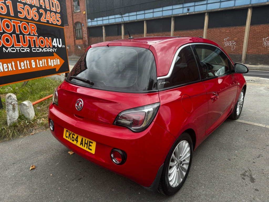 Full Service History, 2 keys, USB/AUX. Bluetooth phone conn.. Heated Seats, Air con. Panoramic Sunroof.  Low Miles. Heated Steering Column . Vauxhall Adam 1.4 16v GLAM finished in Red (Manual), 42000 miles, , , Only £4995, , FINANCE AVAILABLE, PLEASE ASK FOR OUR COMPETITIVE  FINANCE DEALS.12 MONTHS RAC BREAKDOWN COVER AVAILAVLE. Up To 2 years RAC Warranty available. ALL MAJOR CARDS ACCEPTED. INSPECTIONS WELCOME. WE ARE OPEN MONDAY TO SATURDAY 10.00 TO 17.00. All our cars comes with HPI check, Warranty and Full Valet. Part exchange welcome, please ring for details. Open Monday to Saturday 10.00 to 17.00. Full dealer facilities. Please visit our website www.motorsolution4u.co.uk 172 CHESTERGATE, STOCKPORT, SK3 0BQ