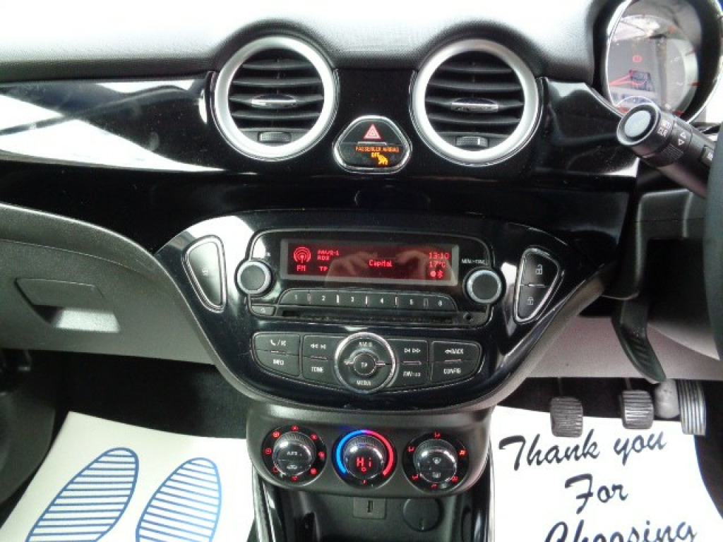 NEW MOT and Service on purchase, STUNNING CAR!This 2016 Vauxhall Adam 1.4 16v SLAM PN16SVA is a stylish and efficient hatchback, with only 43248 miles on the clock with Excellent Service History and a petrol engine that is ULEZ compliant. This 3-door car comfortably seats 4 people and comes with features including a CD player with MP3 compatibility, DAB digital radio, and a mobile phone system with Bluetooth connectivity. Air Con, Black Alloys, Cruise Control, It also has an aux in socket and a 12V power socket, making it a convenient choice for any driver. This Vauxhall Adam is a reliable and practical option for anyone in the market for a small, fuel-efficient vehicle. v power socket, aux in socket, cd player - with mp3 compatability, dab digital radio, mobile phone system with bluetooth connectivity, rds - radio data-traffic system, speakers - x7, usb connection with ipod control, 17in alloy wheels - hurricane - manoogian, black b-pillars, body-colour door handles, bumpers - body coloured, chrome effect side window mouldings, door mirrors - electrically adjustable-heated, door mirrors - housings - ill be black, door sills - chrome effect front, electric windows - front with one touch facility, exterior light pack, locking wheel nuts, roof - ill be black, tinted glass, tyre inflation kit, windows - dark tinted rear, abs - anti-lock braking system, airbags - deactivation switch for front passengers, airbags - front curtain, airbags - front passenger, airbags - side impact, brake lights - adaptive, cbc - cornering brake control, drivers dual-stage airbag, eba - emergency brake assist, ebd - electronic brakeforce distribution, esp - electronic stability programme, hsa - hill start assist, isofix for outer rear seats, immobiliser, pedal release system, remote central locking, seatbelt unfastened warning, steering column - energy absorbing, straight line stability control, traction control, air recirculation system, chrome effect interior door handles, climate control - ecc - electronic, door pockets, drinks holder - x2 rear centre console, drinks holder in centre console, front passengers seat height adjuster, glovebox - illuminated, grab handles - front, height adjustable front and rear headrests, illuminated boot, interior pollen filter, load compartment - cover, map pockets on front seat backs, seats - 50-50 split rear back, seats - drivers height adjustment, steering wheel - height-reach adjustable, steering wheel - leather, steering wheel - mounted controls for audio, sunvisors - driver and passenger with vanity mirrors, city mode button - provides lighter steering at parking speeds, cruise control with speed limiter, pas - power assisted steering, speed limiter, suspension - lowered sports, trip computer, tyre pressure monitoring system, daytime running lights - led, tail lights - led