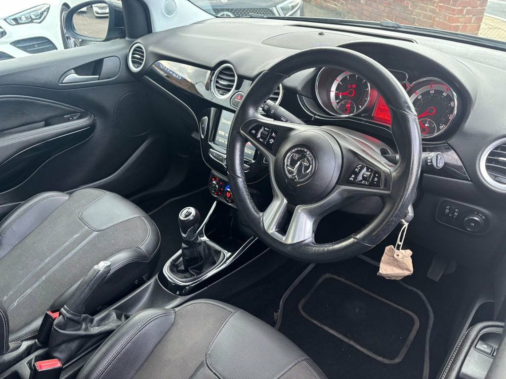 Full service history Bluetooth Parking sensors 12 months MOT 6 months warranty This 2016 Vauxhall ADAM i SLAM is presented with a clear vehicle history check, offering you peace of mind. This stylish hatchback features a 1.4 litre petrol engine and meets Euro 6 emissions standards. Inside, you'll find Electronic Climate Control with air conditioning and a six speed fan, ensuring a comfortable cabin temperature whatever the weather. For your entertainment and connectivity needs, this ADAM includes music streaming via Bluetooth and a Bluetooth mobile phone portal, allowing for seamless integration of your devices. The Vauxhall ADAM i SLAM is designed to be a joy to own and drive. Its low insurance group rating means that running costs are kept down, making it an attractive option compared to similar vehicles. This particular model, the SLAM trim, offers a well equipped and enjoyable driving experience, combining practicality with modern features for everyday use. 12V Power Socket - Centre Console, 17in Alloy Wheels - Hurricane - Manoogia, ABS - Anti-Lock Braking System, Adaptive Brake Lights, Air Blend Heater, Air Recirculation with Activation Light, Airbag - Drivers, Airbags - Front Passenger, Airbags - Front Seat Side-Impact, Anti-Submarining Ramps in Front Seats, Aux in Socket, Black B-Pillars, Black Jack Roof Colour Pack, Bluetooth Mobile Phone Portal, Body-Colour Door Handles, CBC - Cornering Brake Control, CD-MP3 CD Player-Stereo Radio, Chrome Effect Door Sill Covers, Chrome Effect Interior Door Handles, Chrome Effect Side Window Mouldings, City Mode Button - Provides Lighter Stee, Collapsible Windscreen Wiper System, Colour Keyed Fleece Velour