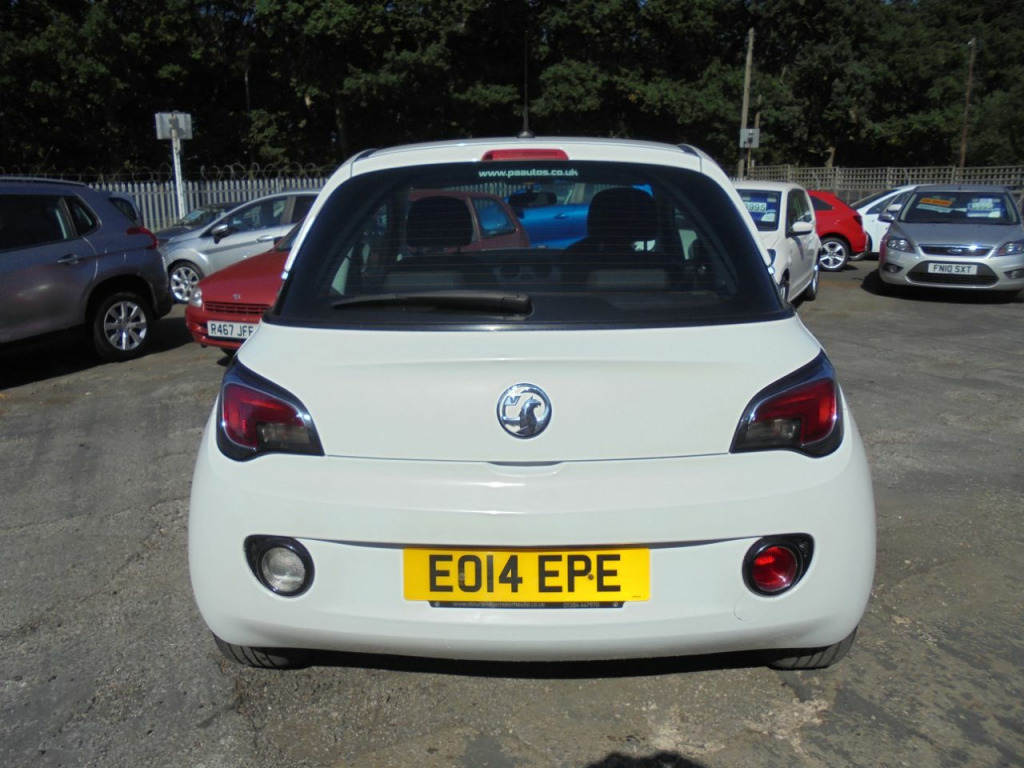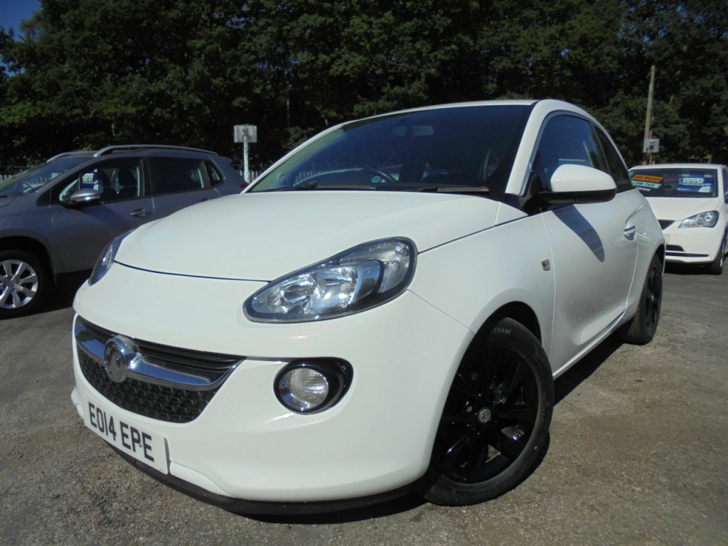 A 2014 REG VAUXHALL ADAM JAM 1.2i 3DR 5SP IN WHITE WITH CONTRASTING CLOTH TRIM,AIR CON,CRUISE CONTROL,MULTI FUNCTION STEERING WHEEL,ELECTRIC WINDOWS,ELECTRIC DOOR MIRRORS,REMOTE CENTRAL DOOR LOCKING,ALLOY WHEELS,ONLY 60000MILES FROM NEW WITH SERVICE HISTORY,AN IDEAL FIRST CAR THAT LOOKS GREAT VALUE AND NOT TO BE MISSED AT ONLY £4795.
