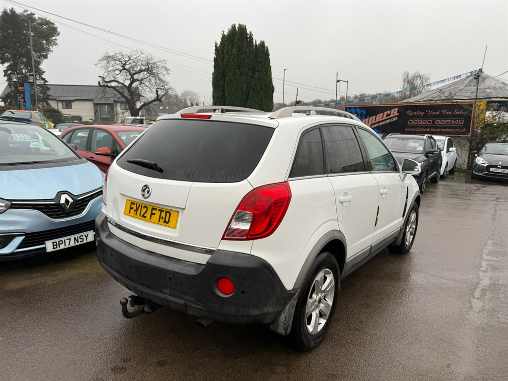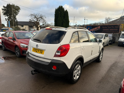 Vauxhall Antara 2.2 Exclusiv in bright white. This 2012 model is powered by a robust 2.2L diesel engine that delivers an impressive 160 BHP, ensuring a dynamic driving experience while maintaining a fuel consumption of up to 54 mpg, making it an economical choice for both city driving and longer journeys. Comes with plenty of stamps in the service booklet, a well maintained car. Great spec including Cruise Control, 1/2 Leather Upholstery, Heated Seats, Parking Sensors, A/C, Alloy Wheels etc. Don’t miss out on the chance to own this fantastic Vauxhall Antara. Contact us to book a test drive today or call 02920885149 to speak with one of our team members at Coopers Car Sales in Caerphilly. We look forward to helping you drive away in your new car! 12v Socket,Adjustable Steering Wheel,Air Conditioning,Alarm,Alloy Wheels,Anti Lock Brakes,Aux Input,CD Radio,Central Locking,Cruise Control,Cupholders,Driver Airbag,Electric & Heated Door Mirrors,Fuel Computer,Half Leather Trim,Heated Seats,Height Adjustable Drivers Seat,Immobiliser,ISOFIX,Multiple Airbags,Passenger Airbag,Power Assisted Steering,Rear Parking Sensor,Split Folding Rear Seats,Remote Central Locking,Traction Control,Trip Computer,Tow Bar