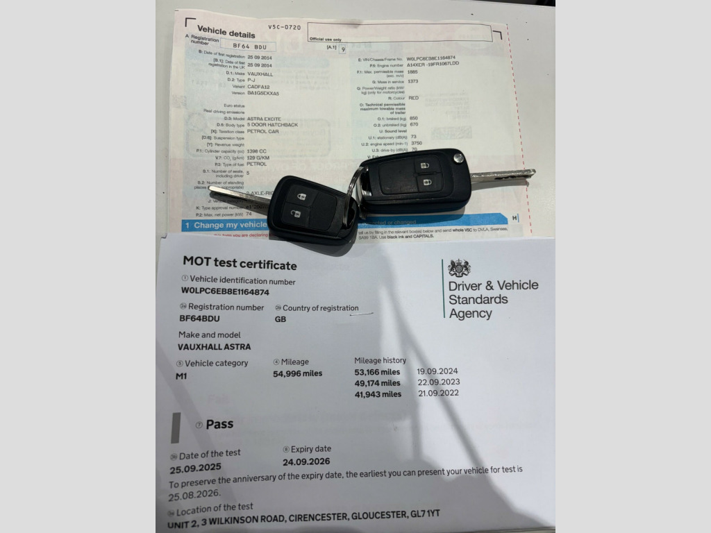 This 2014 Vauxhall Astra Excite presents an exceptional ownership proposition with its remarkably low mileage of just 55,000 miles, a figure significantly below average for a vehicle of its age. This particular Astra has been cherished by a single owner since new and boasts a full dealership service history, with its most recent service completed on 2nd January 2026 at 55,000 miles. For your peace of mind, the MOT is valid until September 2026, and the vehicle comes with a 6 month warranty. It features a 1.4 litre petrol engine and includes a mobile phone system with Bluetooth connectivity.The Vauxhall Astra Excite stands out with several key advantages that set it apart from other vehicles. Its very low mileage for a 2014 model indicates less wear and tear, suggesting a potentially longer lifespan and fewer immediate maintenance concerns. The single owner history further reinforces its well cared for status. Additionally, its inclusion in a low insurance group means more affordable running costs for the owner, while the generous boot space offers practical convenience for everyday use and longer journeys.. 12V Power Socket - Centre Console, 17in Alloy Wheels - Gloss Black Five Twin-Spoke, 60-40 Split-Folding Rear Seat Back, ABS - Anti-Lock Braking System, Air Blend Heater with Six Speed Fan, Airbag - Drivers, Airbags - Deactivation Switch For Front Passengers and Side Impact, Airbags - Front Passenger, Airbags - Front Seat Side-Impact, CBC - Cornering Brake Control, CD Player - CD400 with MP3 Compatability and Aux In, Collapsible Windscreen Wiper System, Cruise Control, Deformation Zones Front and Rear, Door Mirrors - Electrically Adjustable-Heated, EBA - Emergency Brake Assist, ESP - Electronic Stability Programme, ESP - Electronic Stability Programme Plus, Electric Headlight Beam Levelling, Electric Windows - Front with One Touch Facility, Electronic Engine Deadlock Immobiliser, Electronic Theft Protection For Audio Equipment, Ellipsoid Headlights, Full Length Curtain Airbags, HBA - Hydraulic Brake Fade Assist, ISOFIX For Outer Rear Seats, Interior Pollen Filter, Manually Foldable Door Mirrors, Mobile Phone System with Bluetooth, PAS - Power Assisted Steering, Remote Control Central Deadlocking, Seats - Drivers Height Adjustment, Side Impact Protection Beams, Steering Column - Adjustable for Reach and Rake, Steering Wheel - Mounted Controls For Audio, Straight Line Stability Control, TRC - Traction Control, Tinted Glass. Full dealership history