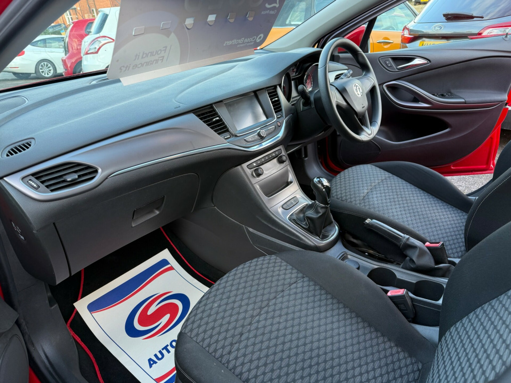 Lovely petrol Vauxhall Astra 1.4 great value v power socket - front, aux connection, android auto, apple carplay, bluetooth connectivity - audio, bluetooth mobile phone portal, dab - digital radio, display screen - 7in colour, display screen - 7in colour touchscreen, r 4.0 intellilink system, rds with traffic programme, smart phone projection - intellilink, speakers - x4, stereo radio - am-fm, usb connection with ipod control, 16in structure wheels, body-colour door handles, body-coloured rear roof spoiler, chrome effect headlights, chrome effect upper window trim, door mirrors - body coloured, door mirrors - electric - heated, electric windows - front and rear with safety autoreverse and one touch facility, emergency tyre inflation kit, gloss black c-pillars, grille bar - chrome-effect, heated rear window with automatic timed cut-off, led side repeat indicators, laminated windscreen, locking wheel nuts, manually foldable door mirrors, matt black b-pillars, solar heat absorbing windscreen, windows - tinted, windscreen and front side-window demist vents, abs - anti lock brakes, airbags - curtain, airbags - front side, airbags - passenger, brake lights - adaptive, burst-proof door locks and anti-jam door design, cbc - cornering brake control, central locking activation switch on facia, child proof locks on rear doors, deactivation switch for front passengers airbag, deadlocks, drag torque control, drivers airbag, drivers and front passengers seatbelt unfastened warning lights, eba - emergency brake assist, ebd - electronic brakeforce distribution, esp plus - electronic stability programme, electronic engine deadlock immobiliser, electronic theft protection for audio equipment, energy absorbing steering column, fading brake support, folding key, freewheeling door locks, front and rear seatbelt pretensioner system, hsa - hill start assist, hazard warning lights, isofix child seat restraint system for outer rear seats incorporating top tether, intermittent rear window wipers with washer, key left in ignition audible warning, lockable fuel filler cap, pedal release system, remote central locking, rollover mitigation, seats - anti-submarning ramps - front and rear, side impact protection beams, straight line stability control, traction control, air conditioning, air recirculation system, antello sand trim inserts on front doors, black door panels with black atlantis cloth inserts, black facia with antello sand trim inserts, chrome effect interior door handles, comfort front seats, dipping rear-view mirror, drinks holder in centre console, four adjustable heating and ventilation outlets, front courtesy lights, front door pockets, fully carpeted luggage area, glovebox with lid, head restraints - rear height adjustment, height-adjustable front seat head restraints, illuminated controls, illuminated luggage area, instrument cluster with monochrome display, interior pollen filter, interior tailgate handle, load restraint lashing eyes, luggage compartment - cover, rake and reach adjustable steering, rear courtesy lights, rear door pockets, rear floor ventilation ducts, seats - driver 8-way manual adjustment, seats - passenger 6-way manual adjustment, seats - rear split folding 60-40, steering wheel - mounted audio controls, steering wheel - satin chrome-effect bezel, steering wheel - three spoke, storage box on drivers side lower facia, sunvisors - driver and passenger with vanity mirrors, two speed windscreen wipers with variable intermittent wipe, central facia display, cruise control with speed limiter, digital clock with automatic rds time adjustment, driver information display, exterior temperature sensor, gearshift indication light, rev counter, speed limiter, speed sensitive power assisted steering, trip computer - multi-function, tyre pressure monitoring system, daytime running lights - led, door to door illumination, halogen headlights, headlights - automatic on, headlights - manual beam levelling, high-level led centre rear brake light, lights on audible warning