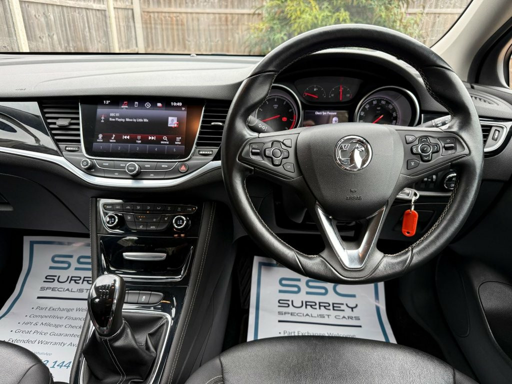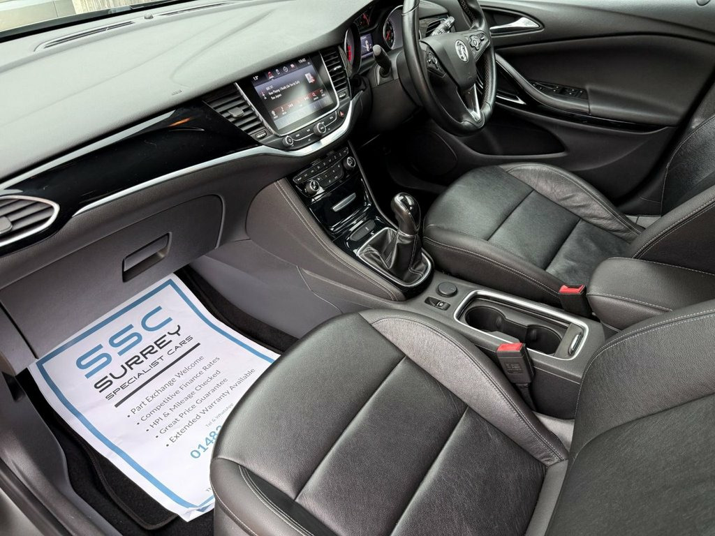 Surrey Specialist Cars are proud to present our lovely Vauxhall Astra Elite Turbo. This amazing car comes with Service History, finished in stunning metallic grey with leather seats. The car has a MOT until March 2026 so it is ready to go. The 1.4L Petrol engine offers superb economy at over 48 MPG on combined cycle. Features Include Multifunction Steering Wheel, Heated Steering Wheel, Trip Computer, Satellite Navigation, Heated Seats, Parking Sensors, Cruise Control, Speed Limiter, Stereo/Phone Control, FM/DAB Radio, Android Auto, Apple CarPlay, Bluetooth Audio, AUX Input, USB Input, Air Conditioning, USB Input, 12V Charging Socket, Electric Windows, two Cup Holders, 6 Speed Manual Gearbox, 17 Inch Alloy Wheels and two Remote Control Keys to name a few. 12 Volt Electrical Accessory Socket in F, 17in Alloy Wheels - Multi Spoke, ABS - Anti-Lock Braking System, Adaptive Brake Lights, Airbag - Drivers, Ambient LED Lighting - Front Doors, Ambient Lighting - LED Facia-Centre Cons, Anti-Submarining Ramps in All Seats, Automatic Lighting Control with Tunnel D, Automatically Dimming Anti-Dazzle Rear-V, Black Door Panels with Black Leather-Eff, Black Facia with Piano Black Trim Insert, Body-Colour Door Handles, Body-Coloured Rear Roof Spoiler, Bonnet - Headlight - Wiper Structure, Burst-Proof Door Locks and Anti-Jam Door, Central Facia Display, Central Front Courtesy Light, Central Rear Courtesy Light, Child Proof Locks on Rear Doors, Chrome Effect H