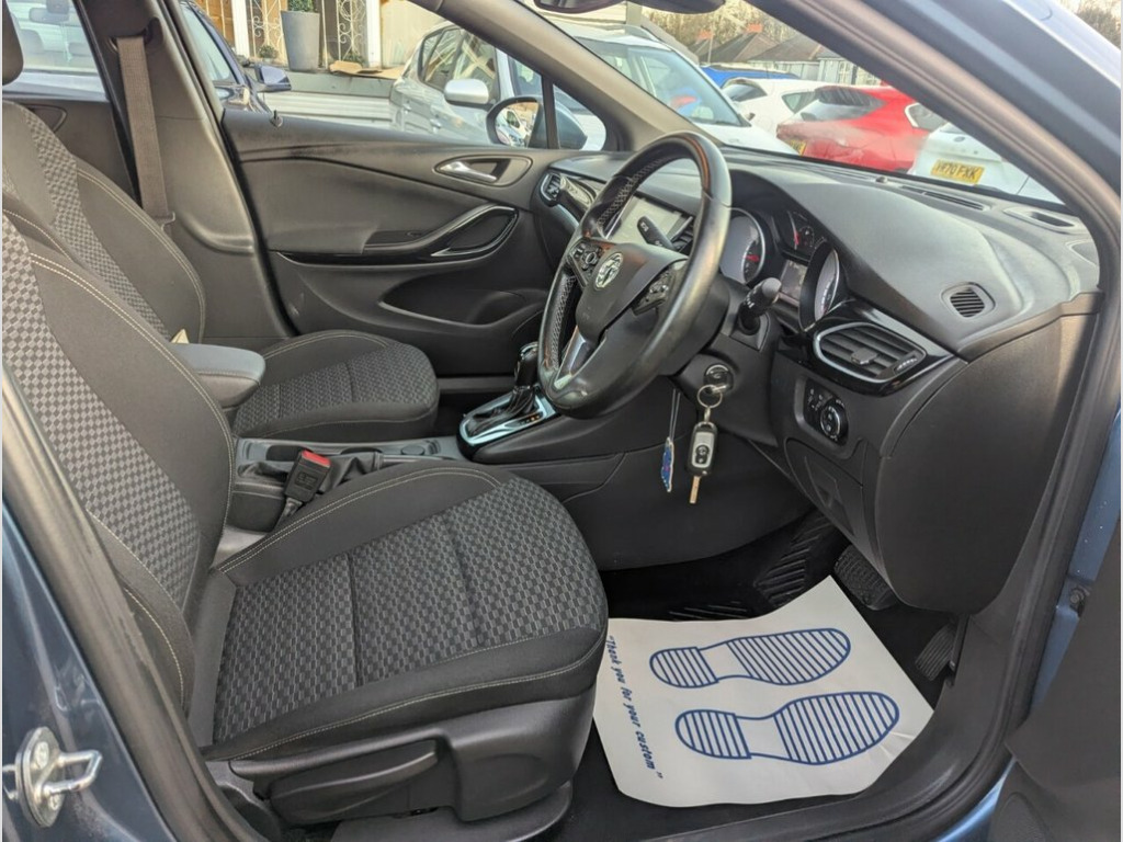 FULL VAUXHALL SERVICE HISTORY THIS 2016 VAUXHALL ASTRA 1.4i TURBO SRi NAV 5 DOOR PETROL AUTOMATIC EURO6 IN METALLIC DEEP SKY BLUE WITH CONTRASTING BLACK CLOTH SPORTS INTERIOR FULL VAUXHALL SERVICE HISTORY 9 STAMPS WITH FULL INVOICING SAT NAV DAB MEDIA SYSTEM WITH BLUETOOTH AND AUX..CRUSE CONTROL PARKING SENSORS 17 INCH 5 DOUBLE SPOKE ALLOYS BRISTOL CLEAN AIR ZONE FRIENDLY 12V Power Socket - Front, 17in Alloy Wheels - Five Twin Spoke, 3D Street Level Mapping, ABS - Anti Lock Brakes, Air Conditioning, Air Recirculation System, Airbags - Curtain, Airbags - Front Side, Airbags - Passenger, Alarm - Remote Control Ultrasonic, Ambient Lighting - LED Facia-Centre Cons, Android Auto, Apple CarPlay, Armrest - Front Centre with Storage, Automatic City Emergency Braking, AUX Connection, Black Door Panels with Black Atlantis Cl, Black Facia with Piano Black Trim Insert, Bluetooth Connectivity - Audio, Bluetooth Mobile Phone Portal, Body-Colour Door Handles, Body-Coloured Rear Roof Spoiler, Brake Lights - Adaptive, Burst-Proof Door Locks and Anti-Jam Door, CBC - Cornering