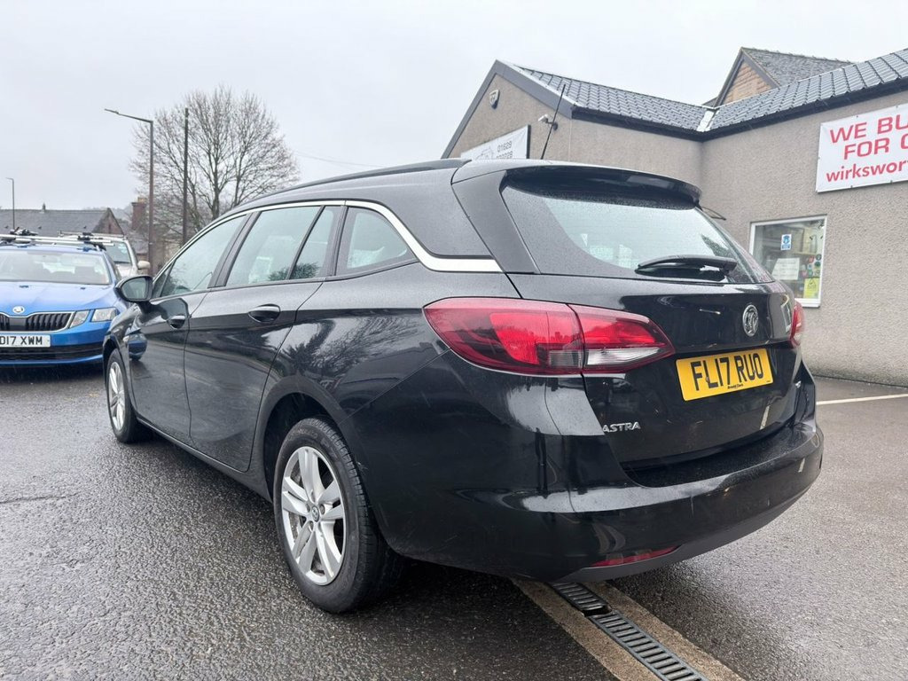 **HERE WE HAVE A SUPERB MANUAL 1.6 DIESEL VAUXHALL ASTRA ecoFLEX DESIGN SPORTS TOURER (euro 6)**SAME OWNER LAST 6 YEARS & ONLY 1 FORMER KEEPER**VERY GOOD FULL SERVICE HISTORY WITH 10 SERVICES INCLUDING A NEW COMPLETE CLUTCH @ 77216 miles & WILL BE SERVICED WHEN SOLD**MULTI-FUNCTION STEERING WHEEL**TOUCH SCREEN MEDIA WITH DAB RADIO, PHONE PROJETION, USB PORT, BLUETOOTH**CRUISE CONTROL/SPEED LIMITER**AUTO LIGHTS**ESP**4 x ELECTRIC WINDOWS**ELECTRIC DOOR MIRRORS**ISOFIX**16" ALLOYS**SPACE SAVER SPARE WHEEL**REMOTE CENTRAL LOCKING **EXCELLENT MPG**VERY LOW INSURANCE GROUP**£195 ROAD TAX**OWNERS MNAUAL**2 x KEYS** 12 Volt Electrical Accessory Socket in F, 12V Power Socket - Luggage Compartment, 16in Alloy Wheels, 16in Structure Wheels, 60-40 Split-Folding Rear Seat Back, ABS - Anti-Lock Braking System, Adaptive Brake Lights, Air Conditioning, Airbag - Drivers, Anti-Submarining Ramps in All Seats, Automatic Lighting Control, Black Door Panels with Black Atlantis Cl, Black Facia with Antelao Sand Trim Inser, Body-Colour Door Handles, Body-Coloured Rear Roof Spoiler, Bonnet - Headlight - Wiper Structure, Burst-Proof Door Locks and Anti-Jam Door, Central Facia Display, Central Front Courtesy Light, Central Rear Courtesy Light, Child Proof Locks on Rear Doors, Chrome Effect Headlight Detail, Chrome Effect
