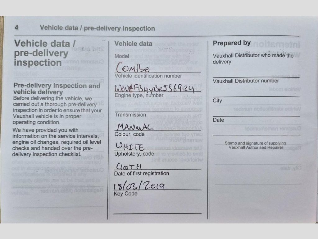 Looking for a clean, reliable, and efficient work van? This 2019 Vauxhall Combo 1.6 Turbo D 2300 Edition in stunning Jade White is ready to go straight to work – and best of all, there's no VAT to pay! This Combo combines dependable Vauxhall build quality with low running costs and strong fuel economy. It's the ideal van for anyone who wants professional performance without the VAT premium. Comes with 4 stamps in the Service Book as well as just being seviced by ourselves, MOT until June 2026 and it has 2 Keys. Features include the Roof Rails Upgrade, Full Steel Bulkhead, Twin Sliding Load Doors, Bluetooth, DAB Radio, 16in Steel Wheels and more. See below for the full list of features. Book today to view and test drive. Open 7 days a week. All part exchanges welcome. Please ask for details of our finance and extended warranty options, subject to status, T's and C's apply. Bluetooth Connectivity, Bluetooth A2DP Audio Streaming, DAB Digital Radio, Full Height Steel Bulkhead , Roof Rails, 16in Steel Wheels , USB Connection with iPod Control, Nearside and Offside Sliding Side-access, Twin Solid Rear Doors, Electrically Operated Front Windows , Drivers Seat with 4-way Adjustment, Driver Information Display, Multi-Function Trip Computer, Full-Width Overhead Storage Shelf with A, Two Drinks Holders in Centre Console, Two Facia Mounted Drinks Holders, Steering Column Adjustable for Reach and, Mistral Grey Curitiba Fabric Upholstery, Illuminated Load Area, Twin Electrically Adjustable Door Mirror, White Jade, ABS - Anti-Lock Braking System, Emergency Brake Assist, EBD
