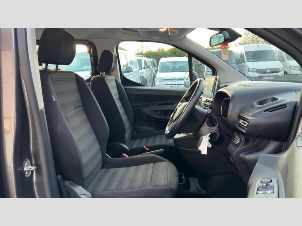 Vauxhall Combo Life 1.5 Turbo D Energy 5dr Apple car play/Android Auto, Cruise control + speed limiter, Digital clock, Door/boot open warning light, Driver alert system, Exterior temperature gauge, Forward collision warning, Front and rear parking sensors, Lane departure warning with lane change assist, Low fuel level warning light, Multi function trip computer, PAS, Remote control boot opening, Rev counter, Service indicator, Traffic sign recognition, Diesel particulate filter, Steering wheel mounted audio controls, 2 speed wipers+variable intermittent wipe, Body colour bumpers, Body colour door handles, Body colour door mirrors, Body coloured bodyside mouldings, Chrome front grille, Daytime running lights, Dipping rear view mirror, Electric front windows + drivers one touch, Electrically adjustable and heated door mirrors, Front fog lights, Glazed tailgate, Heated rear windscreen, Integrated fuel filler cap, Offside sliding side door and sliding windows in nearside and offside doors, Rear wiper, Tinted glass including windscreen, Welcome lighting, 2 cupholders in front centre console, 4 way adjustable front head restraints, 4 way manually adjustable passenger seat with height, reach, tilt, backrest and headrest, 6 way manually adjustable drivers seat, 60/40 split folding rear seat, Adjustable dashboard illumination, Auxilliary 12V power socket, Boot lashing points, Carpet floor mats, Chrome inner door handles, Cooled glovebox, Delay courtesy light function, Driver's lumbar support, Driver/passenger reading lights, Driver/passenger sunvisors with illuminated vanity mirrors + covers, Front comfort seats, Front/rear courtesy lights, Glovebox with lid, Height/reach adjust steering wheel, Isofix on 2nd row rear seats, Luggage shade, Mistray cloth upholstery, Pollen filter, Rear adjustable/removable headrests, Rear door pockets with bottle holders, Storage box under drivers seat, Sight and light Pack - Combo Life, ABS, Autonomous emergency braking, Child locks on rear doors, CSC - Cornering stability control, Driver/Front Passenger airbags, Electronic brake force distribution, Emergency brake assist, ESP, Front and rear curtain airbags, Front and rear outer seat belt pre-tensioners, Front lateral airbags, Front seat side impact airbags, Front seatbelt force limiters, Hill start assist, Manual passenger airbag deactivation function, Motor Slip Regulation (MSR) - Engine Drag Torque Control, Seatbelt warning, Three 3 point rear seatbelts, Traction control, Tyre pressure monitor, 2 remote folding keys, Immobiliser, Locking wheel nuts, Remote central deadlocking, Chrome instrument cluster dial rings, 16" 7 spoke alloy wheels