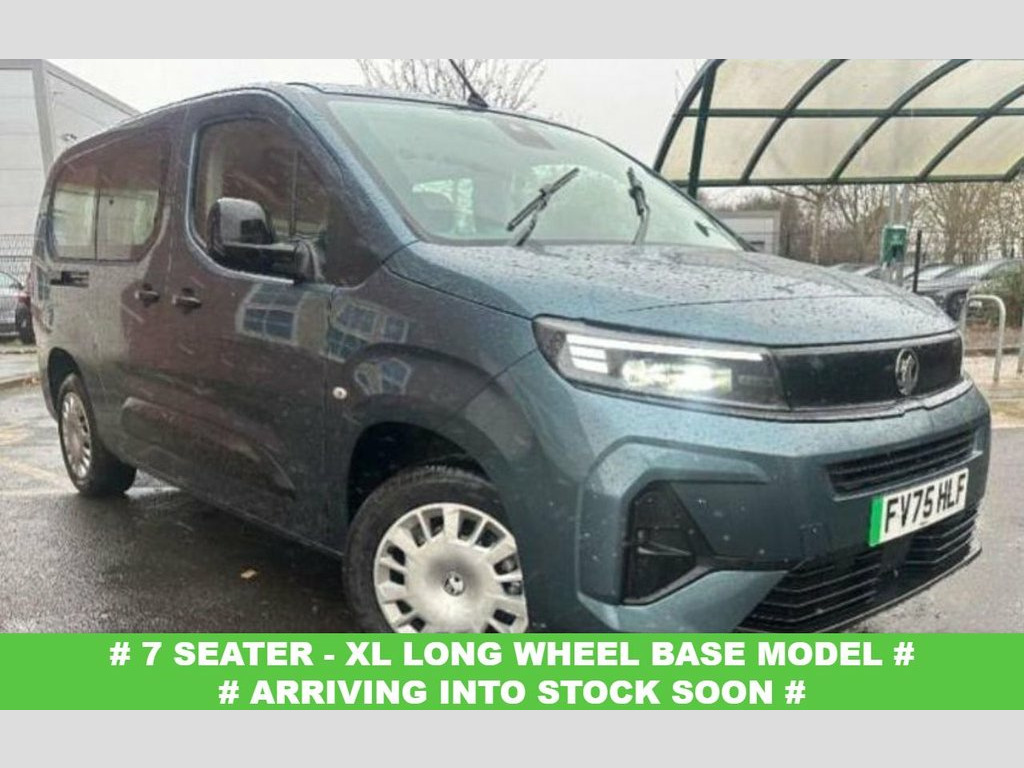 **7 seater** Metallic Blue - ARRIVING INTO STOCK SOON & YES ONLY 1,150 MILES WITH 1 PRIVATE OWNER + 7 SEATER XL LONG WHEEL BASE MODEL WITH THE BALANCE OF VAUXHALL WARRANTY FIRST REGISTERED 27/10/2025 - PARK SENSORS, APPLE CAR PLAY & ANDROID AUTO - SUPPLIED WITH 2 X KEYS, CHARGE CABLE & HANDBOOKS - EXCELLENT CONDITION & DRIVE - COMPETITIVE FINANCE QUOTES ON OUR WEBSITE & PART EXCHANGE WELCOME - LOW MILEAGE VEHICLE SPECIALISTS!! 1-3 - 2-3 Rear Folding Second-Row Bench , 10in Digital Instrument Cluster, 12V Power Socket - Dashboard, 16in Steel Wheels with Full Hubcap, 4x Tie Bracket Points in Lower Trunk Are, 6 Airbags, 7.4kW Single-Phase On-Board Charger, Advanced Emergency Braking System, Air Recirculation Facility, Airbags - Full Size Curtain, Automatic Emergency Braking - AEB, Automatic Lighting Control, Black Painted Door Handles and Black Gra, Black Side Protection Mouldings, CBC - Cornering Brake Control, Cabin Particulate Filter - Removes Dust , Central Facia Display, Central Front Courtesy Light, Central Locking Activation Switch on Dri, Central Rear Courtesy Light, Central Rear View Mirror - Black Painted,