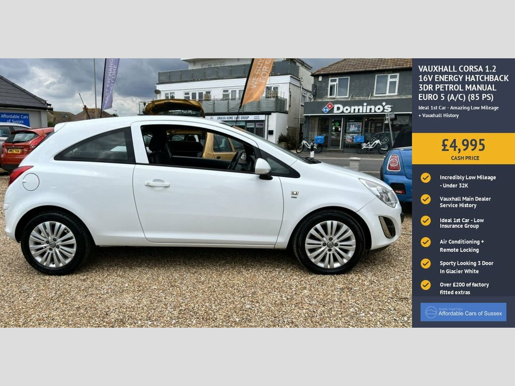 This 2013 Vauxhall Corsa 1.2 16V Energy Hatchback 3dr Petrol Manual Euro 5 Hatchback is currently available for £4,995 in Peacehaven East Sussex with Petrol engine and Manual gearbox. For more information or to arrange a viewing, click here to send us an email using form below.