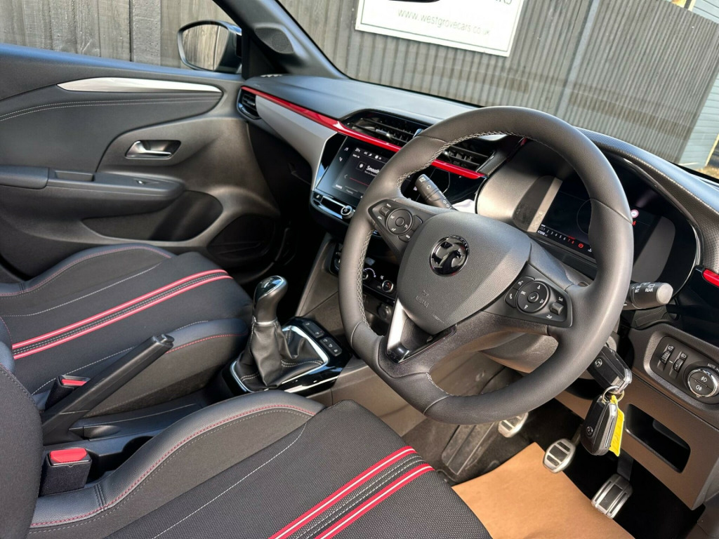 Westgrove Cars are delighted to be able to offer for sale this Vauxhall Corsa 1.2 GS Euro 6 5dr. This car comes with a Full service History and two keys are supplied. Vauxhall Warranty Until 31.03.2026. Highly competitive finance options are available. We are easy to locate and only 7 minutes from the M25 Junction 11. At Westgrove Cars we operate on an appointment only basis, however we will always do our upmost to accommodate all appointments. If traveling by public transport, then just give us a call and we can arrange a collection service for you to make your journey as easy as possible. If you have any questions just give us a call as we're always happy to help anyway we can. nda fabric with mistral fabric side bolsters - marvel black with signal red and dark titanium stitching, 17in alloy wheels - black, 7in digital colour instrument cluster, abs - anti-lock braking system, airbag - drivers, airbags - front passenger, airbags - front seat side-impact, airbags - full size curtain, automatic anti-dazzle rear-view mirror, automatic emergency braking with pedestrian detection, automatic lighting control, black door mirrors, black headliner, black lower side window mouldings, black roof and a-pillars, body colour door handles, body coloured front and rear bumpers, central facia display, chrome griffin logo and bar, cornering brake control, cruise control with intelligent speed limiter, dark tinted rear side and tailgate windows, deactivation switch for front passengers airbag, door handles - interior - chrome effect, door mirrors - electrically adjustable-heated, drag torque control, driver drowsiness system, driver information display, drivers seat 6-way adjustable, ebd - electronic brakeforce distribution, esp - electronic stability programme, electrically operated front and rear windows, electronic climate control, emergency brake assist, forward collision alert, front camera system, front centre armrest with storage, front passengers seat - four-way adjustable, fuel gauge with low fuel level warning light, high beam assist, high gloss black b-pillars, hill start assist, isofix child seat mountings incorporating top tether anchor points located on outer rear seats, led front fog lights, led headlights and daytime running lights, led tail lights, lane departure warning with lane assist, liquid palladium cloth inserts, liquid palladium facia with hot red accent, locking wheel bolts for alloy wheels, multi-function trip computer, multimedia infotainment system, pedals - sport - alloy effect, rain sensitive windscreen wipers, rake and reach adjustable steering wheel, rear parking distance sensors, remote control central door locking, remote control security alarm system, seats - 60-40 split folding rear seats, shift up indication light, speed sensitive power assisted steering, speed sign recognition, speedometer and rev counter, sports front and rear body styling, sports style front seats, steering wheel - mounted controls for audio-phone-cruise control, steering wheel - three-spoke design - leather covered flat bottom - satin chrome-effect bezel, straight line stability control, trc - traction control, vauxhall connect, water temperature gauge with warning light