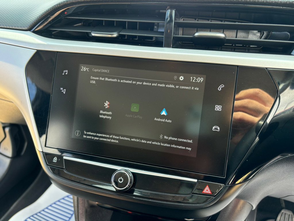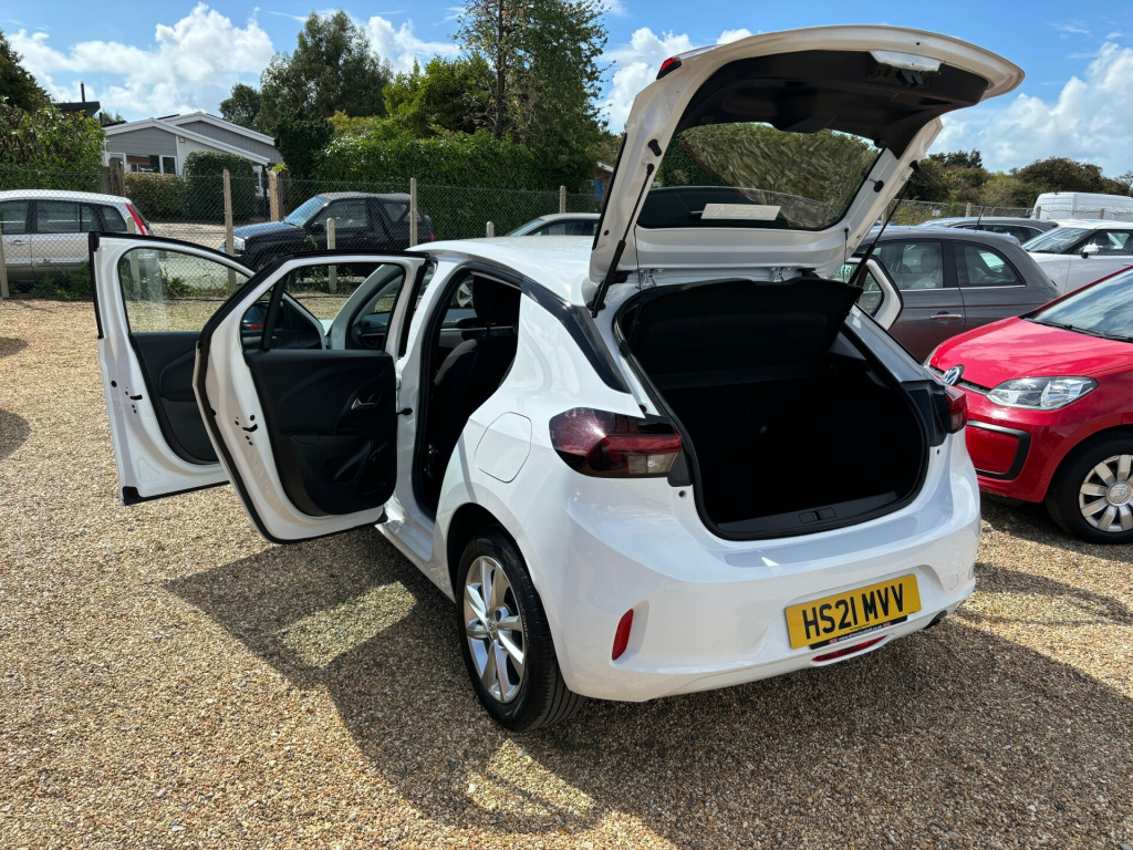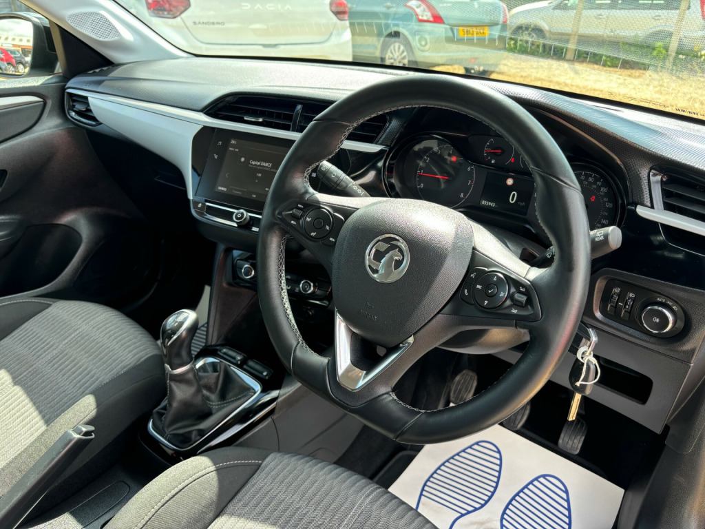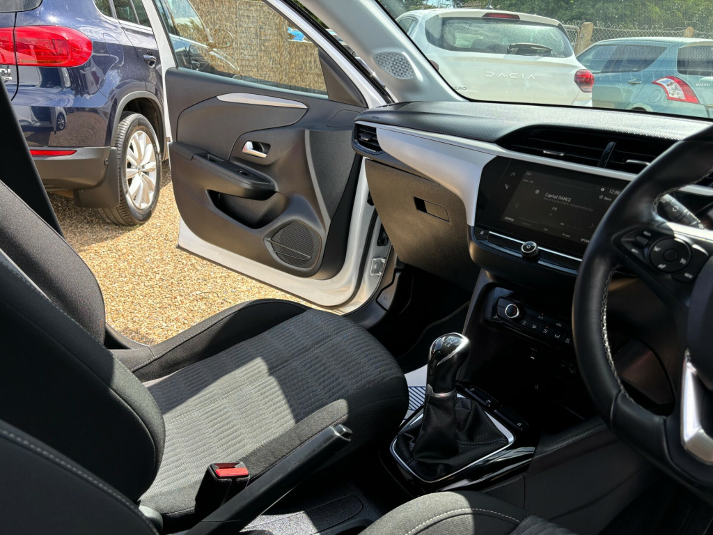 Comes with 1 Year MOT - Serviced - 1 Year Warranty -- Finance options are available from £0 deposit -- This 2021 Vauxhall Corsa 1.2 SE 5dr is a sleek and reliable hatchback with only 35000 miles on the clock and one previous registered keeper. Powered by efficient petrol, it is ULEZ compliant and comes with a MOT renewed on sale. With 5 seats and 5 doors, it is perfect for a small family or daily commute. This car is packed with features including a 3.5'' colour driver instrument cluster, Apple CarPlay/Android Auto, Bluetooth mobile phone portal, central facia display with digital clock and outside air temperature, and cruise control with intelligent speed limiter. Don't miss out on this stylish and practical vehicle., We offer 1 Year MOT, 1 Year Warranty & service included on all our stock. Finance is available on all our stock please contact our Office. 5'' colour driver instrument cluster (dic), apple car play/android auto, bluetooth mobile phone portal, central facia display with digital clock, outside air temperature and audio information, cruise control with intelligent speed limiter, driver drowsiness alert system, engine oil life indicator, front camera system, front pedestrian detection basis, infotainment remote controls right side of steering wheel, telephone buttons on left side, instrumentation - speedometer, rev counter, low fuel gauge warning light + water temperature gauge warning light, shift up/down indicate light, lane departure warning with lane assist, lights on audible warning, multi function trip computer - trip odometer, vehicle range, average speed and fuel economy, instantaneous fuel economy and driving time, rds with traffic programme, service indicator, speed sensitive power steering, speed sign recognition, start/stop system, electronic returnless fuel system, petrol particulate filter, under body shield for aero, am/fm stereo radio, bluetooth a2dp audio streaming, dab digital radio, six speakers, steering wheel audio, phone and cruise controls, usb with ipod control, black lower side window mouldings, body colour door handles, body colour door mirrors, body colour front and rear bumpers, body colour roof and a pillar, bonnet/headlight/wiper structure, centre rear brake lights, chrome logo bar, electrically adjustable and heated door mirrors, electrically operated front and rear windows, flexible roof mounted aerial, glazed tailgate and heated rear window with wash/wipe facility, hazard warning lights, headlamps for left side traffic, high beam assist, inside rear view mirror tiltable day/night folder, led daytime running lights, led headlights, manual headlamp level control, rear fog lamp, rear reversing lights, solar absorbing front and rear side windows and tailgate, solar heat absorbing windscreen and windows, two speed windscreen wipers, upper and lower bumper design, windscreen and side window demist vents, 12v power sockets, 2 way adjustment front driver and co-driver passive headrest, 3 spoke flat bottom leather steering wheel with satin chrome effect bezel, 4 speed fan with illuminated controls, 4 way manual co-driver fore/aft seat with reclining seatback, 6 way manual fore/aft, up/down with reclining driver seatback, 60/40 split folding rear seat, air conditioning with air recirculation facility, cabin particulate filter - removes dust, airborne particles and pollen, comfort front seats, driver/passenger sunvisors with vanity mirrors + covers, four adjustable facia vents, fresez marvel cloth upholstery, front cupholder, front map reading lights, height adjustable head restraints, illuminated glovebox with lid, illuminated load compartment trunk, interior courtesy light, internal chrome door handles, ip plastic insert single piece, jet black door panels on door trim, luggage compartment lighting, mistral fabric side bolsters and surrounds, polyurethane gear knob/lever, rake and telescope adjustable steering column, rear cupholder, right hand drive (rhd), single dome lamp with dual front reading lamps, two litre open door pockets, 3 rear 3 point seatbelts, anti-lock braking system (abs), auto city emergency braking, cornering brake control, deactivation switch for front passenger, drag torque control, ebd - electronic brakeforce distribution, electrical child lock system in rear door latch, electronic stability programme (esp), emergency brake assist, forward collision alert, front seatbelt unfastened audible warning and warning light, hill hold and start system, inertia reel lap and diagonal seatbelts for all seats, isofix child seat mountings incorporating top tether anchor points located on second row rear seats, manual handbrake, seatbelt pretensioners, single tone horn, six airbags - driver, straight line stability control, traction control, tyre deflation detection system, tyre pressure monitoring system, 2 keys one folding with integral remote, engine deadlock and immobiliser, locking wheel nuts, remote control central locking, remote locking fuel filler flap, steering column lock, mistral facia, 16'' silver 8 spoke alloy wheels, tyre repair kit, 12 months mot, 12 months warranty, 2 keys, serviced, 16'' Alloys