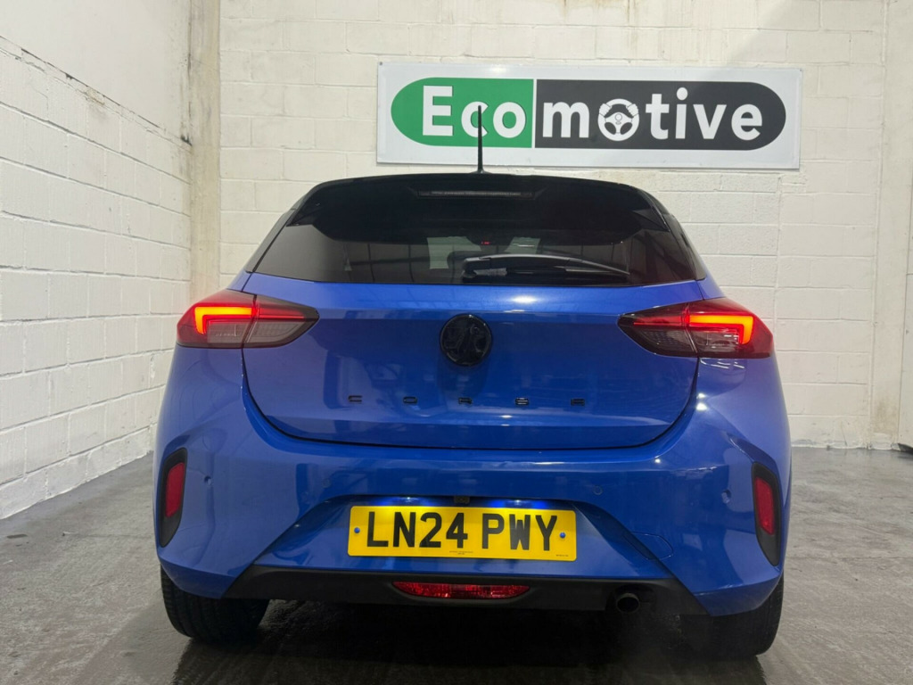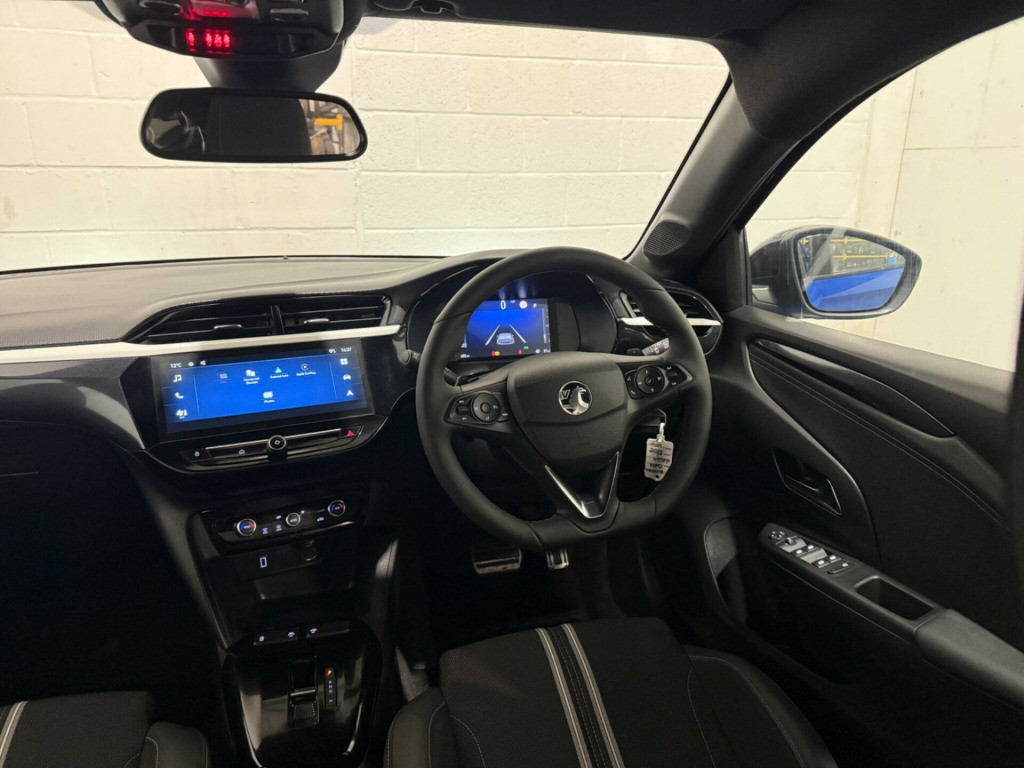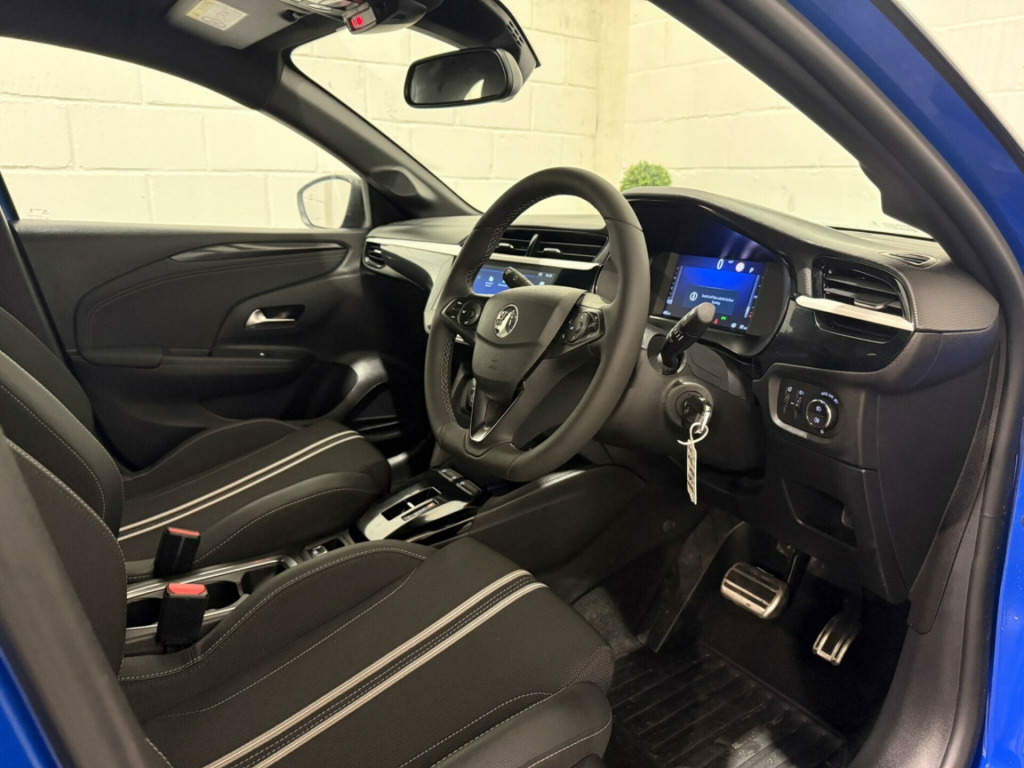 With only 578 miles on the clock, this 2024 Vauxhall Corsa offers an almost-new driving experience. As a GS trim with a Euro 6 compliant 1.2L petrol engine, this car combines efficiency with modern technology. The vehicle's history is clear, and it has had only one owner. Equipped with shift paddles for enhanced control, it also features a side blind spot alert system, including blind spot assistance, to improve safety on the road. Manoeuvring is made easy with a rear parking camera offering a 130-degree view and parking assistance. The multimedia infotainment system, complete with Android Auto, Apple CarPlay, and Bluetooth connectivity, ensures you stay connected and entertained. Automatic lighting control, including automatic headlights, adds to the convenience.This Corsa stands out with its low CO2 emissions, making it an environmentally conscious choice. Acceleration from 0-62mph in just 8.7 seconds demonstrates its responsive performance. This Vauxhall Corsa Turbo GS offers a blend of modern features, low mileage, and efficient performance. in touchscreen - multimedia, 17in alloy wheels - diamond-cut hi-gloss black, 7in digital colour instrument cluster, abs - anti-lock braking system, airbag - drivers, airbags - front passenger, airbags - front seat side-impact, airbags - full size curtain, automatic anti-dazzle rear-view mirror, automatic emergency braking with pedestrian detection, automatic lighting control, black door mirrors, black griffin logo and vizor frame, black headliner, black lower side window mouldings, black roof and a-pillars, body colour door handles, body coloured front and rear bumpers, central facia display, chrome effect exhaust tailpipe extension, cornering brake control, cruise control with intelligent speed limiter, deactivation switch for front passengers airbag, door mirrors - electrically adjustable-heated and folding door mirrors, drag torque control, driver drowsiness system, driver information display, drivers seat 6-way adjustable, ebd - electronic brakeforce distribution, epb - electric parking brake, esp - electronic stability programme, electrically operated front and rear windows, electronic climate control, emergency brake assist, emergency tyre inflation kit, forward collision alert, front camera system, front passengers seat - four-way adjustable, front and rear parking distance sensors, high beam assist, high gloss black b-pillars, hill start assist, isofix child seat mountings incorporating top tether anchor points located on outer rear seats, keyless start, led front fog lights, led headlights and daytime running lights, led tail lights, locking wheel bolts for alloy wheels, multi-function trip computer, multimedia infotainment system, pedals - sport - alloy effect, rain sensitive windscreen wipers, rake and reach adjustable steering wheel, rear parking camera - 130 degrees, remote control central door locking, remote control security alarm system, seats - 60-40 split folding rear seats, shift paddles, side blind spot alert, silent black facia with blanc banquise insert, speed sensitive power assisted steering, speed sign recognition, sport switch, sports front and rear body styling, sports style front seats, steering wheel - flat bottom - leather effect, steering wheel - mounted controls for audio-phone-cruise control, straight line stability control, trc - traction control