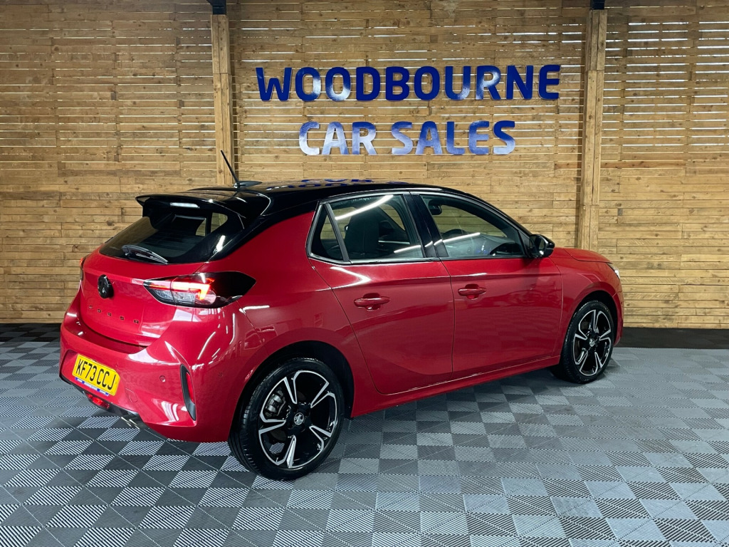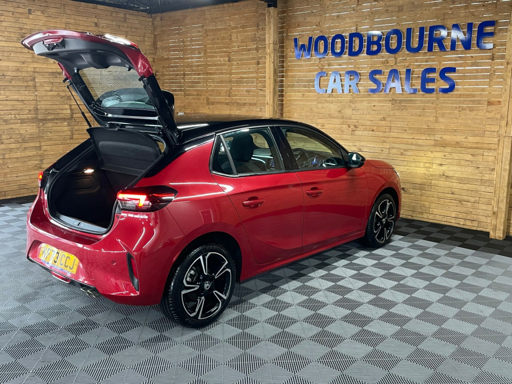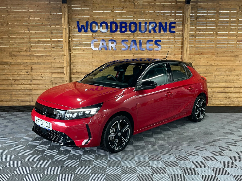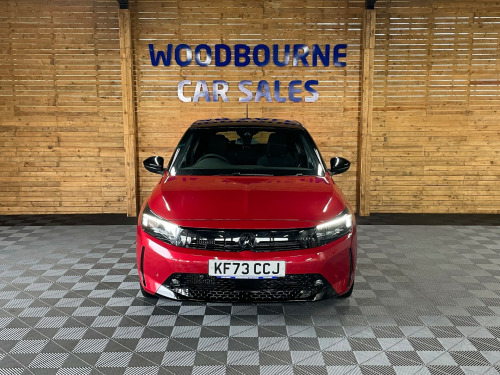 The 2024 Vauxhall Corsa 1.2 Turbo GS Hatchback 5dr Petrol Auto Euro 6 (s/s) (130 ps) is a low-mileage, ULEZ compliant vehicle with only 9000 miles on the clock. This sleek hatchback features a 10in touchscreen multimedia system, allowing for seamless connectivity and entertainment on the go. With a multimedia infotainment system, 17in alloy wheels in diamond-cut hi-gloss black, black door mirrors, and a black griffin logo and vizor frame, the Corsa exudes style and sophistication. As a petrol-powered car, it offers excellent fuel efficiency and a smooth, responsive drive. All of our vehicles go through a detailed mechanical and safety inspection and are fully serviced with a 12 month MOT with no advisories prior to collection., in touchscreen - multimedia, 17in alloy wheels - diamond-cut hi-gloss black, sports front and rear body styling, 7in digital colour instrument cluster, rain sensitive windscreen wipers, sports style front seats, hill start assist, cruise control with intelligent speed limiter, front camera system, front and rear parking distance sensors, apple/android car play
