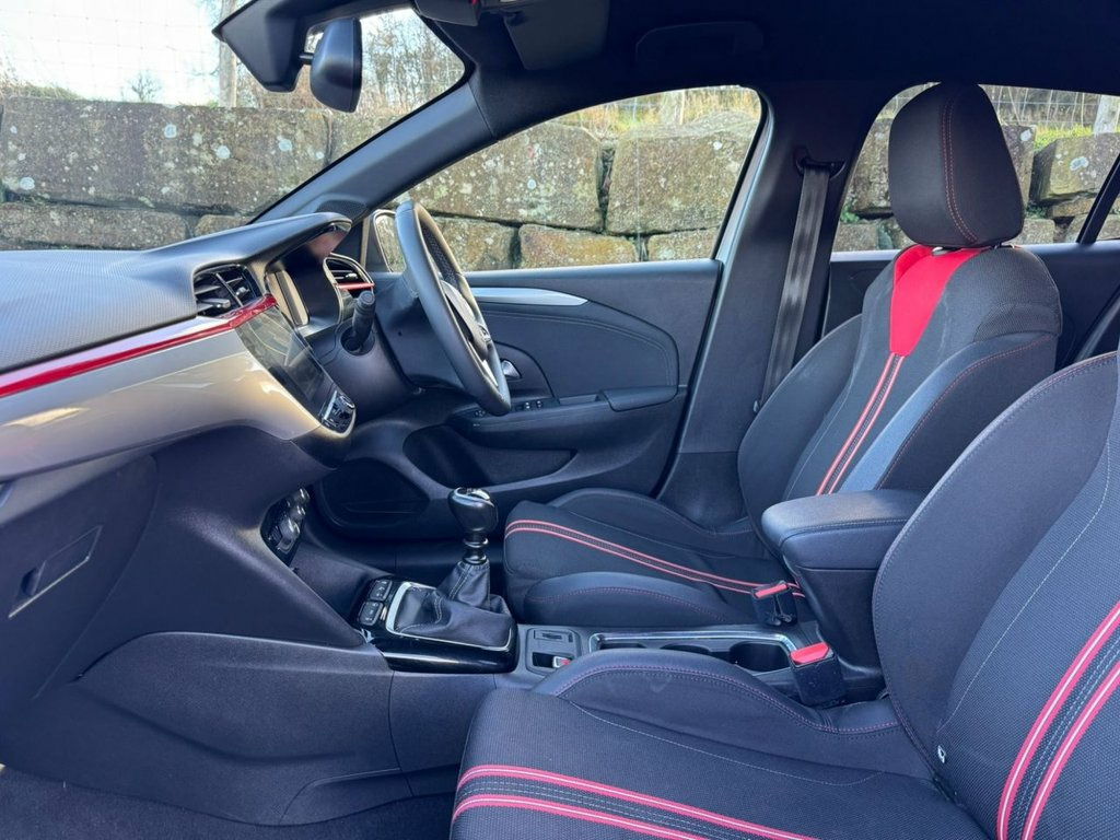 This 2023 Vauxhall Corsa Turbo GS offers a blend of style and practicality, making it an excellent choice for your next vehicle. Powered by an efficient 1.2 litre petrol engine, this Euro 6 compliant model is designed for modern driving. The GS trim level comes equipped with a suite of advanced features, including striking LED headlights and daytime running lights for enhanced visibility. Parking is made simpler with both front and rear parking sensors, complemented by a front camera system. Inside, you'll find a user friendly multimedia infotainment system with seamless Android Auto and Apple CarPlay integration, alongside Bluetooth connectivity for your devices. Maintaining a comfortable cabin temperature is effortless thanks to the electronic climate control. Experience impressive performance with this Vauxhall Corsa, capable of accelerating from 0 to 60 miles per hour in just 9.3 seconds. This model also boasts a remarkable fuel economy of up to 58 miles per gallon, indicating its efficiency compared to other vehicles in its class. Furthermore, its low CO2 emissions contribute to a more environmentally conscious drive. These highlights demonstrate the Corsa Turbo GS's ability to deliver an engaging driving experience while remaining economical and considerate of emissions. Our car's specification includes: Quartz Grey Metallic Paintwork Black / Red Fabric interior Contrast black roof and mirror caps 17" alloy wheels finished in gloss black Rear priva 17in Alloy Wheels - Black, 7in Digital Colour Instrument Cluster, ABS - Anti-Lock Braking System, Airbag - Drivers, Airbags - Front Passenger, Airbags - Front Seat Side-Impact, Airbags - Full Size Curtain, Automatic Anti-Dazzle Rear-View Mirror, Automatic Emergency Braking with Pedestr, Automatic Lighting Control, Black Door Mirrors, Black Headliner, Black Lower Side Window Mouldings, Black Roof and A-Pillars, Body Colour Door Handles, Body Coloured Front and Rear Bumpers, Central Facia Display, Chrome Griffin Logo and Bar, Cornering Brake Control, Cruise Control with Intelligent Speed Li, Dark Tinted Rear Side and Tailgate Windo, Deactivation Switch for Front Passengers, Door Handles - Inte