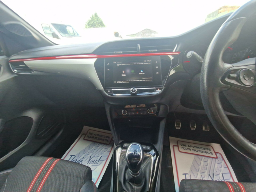 2020 Vauxhall Corsa 1.2 Turbo SRi Euro 6 5dr in excellent condition - The previous owner well maintained the car - Parking Sensors - Air Conditioning - Half Leather Trim - Alloy Wheels - Privacy Glass- The car was fully serviced last month - 2x Keys - HPI Clear // 12 months AA breakdown cover included// We offer the option of an extended national warranty of up to 3 years // Driveaway insurance available // PX Welcome // With only 20,000 miles on the clock, this 2020 Vauxhall Corsa 1.2L Petrol Turbo SRi is barely broken in. As a Euro 6 emission class vehicle, this Corsa SRi comes with a clean vehicle history check and a MOT valid until January 2026. The car is equipped with several features, including air conditioning, LED headlights, and a smartphone interface with Android Auto and Apple CarPlay. Enjoy seamless connectivity with Bluetooth A2DP audio streaming and a Bluetooth mobile phone portal.This Corsa stands out with its impressive fuel economy of 51 mpg, meaning fewer trips to the petrol station and more money in your pocket. The low CO2 emissions mean you'll be contributing to a cleaner environment. Furthermore, the car achieves 0-60mph in just 9.3 seconds, offering a blend of efficiency and responsive performance. v electrical accessory socket, 16in alloy wheels - hurricane 4-twinspoke - silver, 20 watts per channel output, 3.5in colour information display, 60-40 split-folding rear seat back, 7in central colour touch screen, 7in digital instrument cluster, abs - anti-lock braking system, active bonnet - headlight - wiper structure, air conditioning, airbags - front seat side-impact, alloy sport pedals, audio information, automatic emergency braking - aeb, black lower side window mouldings, black roof and a-pillars, bluetooth a2dp audio streaming, bluetooth mobile phone portal, body colour door handles and mirror housing, body coloured front and rear bumpers, cbc - cornering brake control, cabin particulate filter, centre rear brake light, child proof locks on rear doors, chrome logo bar, chrome-effect exhaust tailpipe extension, cruise control with intelligent speed limiter, dab digital radio, deactivation switch for front passengers airbag, deflation detection system, digital clock with automatic rds time adjustment, door handles - interior - chrome effect, door mirrors - electrically adjustable-heated, drag torque control, driver drowsiness system, drivers airbag, drivers seat - six-way adjustable, drivers and front passengers sunvisor incorporating vanity mirrors with covers, eba - emergency brake assist, ebd - electronic brakeforce distribution, esp - electronic stability programme, electrically operated front and rear windows, electronic engine deadlock immobiliser, forward collision alert, four adjustable facia vents, four-speed fan with illuminated controls, front camera system, front passengers airbag, front passengers seat - four-way adjustable, fuel gauge with low fuel warning light, full length curtain airbags, glazed tailgate with heated window and wash-wipe facility, hazard warning lights, headlight levelling system, headlights - high beam assist, height adjustable front and rear seat head restraints, high gloss black b-pillars, hill start assist, isofix child seat mountings points located on outer rear seats, illuminated glovebox with lid, inertia-reel lap and diagonal seatbelts, integrated tailgate spoiler, interior courtesy lights and front map reading light, jet black door panels, led daytime running lights, led front fog lights, led headlights, led tail lights, lane keep assist with lane departure warning, lights on audible warning, liquid palladium cloth inserts, liquid palladium facia with hot red accent, luggage compartment - illumination, outside air temperature display incorporating ice warning function, rds with traffic programme, radio - am-fm with 25 station presets, rear fog light, rear parking distance sensors, remote control central locking, remote control security alarm system, rev counter, reversing lights, roof-mounted flexible aerial, seatbelt unfastened audible warning and warning light, secure fuel filler flap, service-due indicator, shift up indication light, six speakers, smartphone interface, solar heat absorbing windscreen and windows, speed sensitive power assisted steering, speed sign recognition, speedometer, sport switch, sports front and rear body styling, sports style front seats, steering column - adjustable for reach and rake, steering column lock, steering column mounted audio controls, steering wheel - three-spoke design - flat-bottom - leather with satin chrome-effect bezel, straight line stability control, tpms - tyre pressure monitoring system, traction control, trip computer, two keys - one folding with integral remote, two-litre open door pockets, two-speed windscreen wipers, usb connection with ipod control, upper and lower bumper design, vauxhall connect, water temperature gauge with warning light, windows - dark tinted rear, windscreen and front side window demist vents