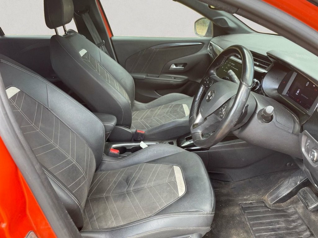 VAUXHALL CORSA 1.2 Turbo Ultimate Hatchback 5dr Petrol Auto Euro 6 (s/s) (130 PS) – A sporty, well-equipped hatchback that blends advanced technology, premium comfort, and efficient performance. Powered by a responsive 1.2 Turbo petrol engine producing 130 PS and mated to a smooth automatic gearbox, this Euro 6-compliant model delivers a refined and enjoyable driving experience. This Ultimate trim is packed with top-spec features including 17in diamond-cut bi-colour alloy wheels, IntelliLux LED Matrix headlights, a Multimedia Navi Pro system, and a 7in digital instrument cluster. Inside, the cabin offers elevated comfort with heated front seats, massage function, LED ambient lighting, and electronic climate control. Driver convenience and safety are front and centre with features such as keyless entry and start, front and rear parking sensors, a panoramic rear-view camera, lane departure warning with lane assist, automatic emergency braking, forward collision alert, cruise control with speed limiter, and speed sign recognition. The Corsa also includes dark tinted rear windows, a black contrast roof, electric folding heated mirrors, and a host of interior refinements including chrome accents, sports steering wheel, flat-bottom design, and high-quality finishes throughout. Additional touches like rain-sensing wipers, auto-dimming rear-view mirror, and Vauxhall Connect ensure modern convenience. This vehicle benefits from a full service history, ensuring it has been m 12V Electrical Accessory Socket, 17in Alloy Wheels - Diamond-Cut - Bi-Col, 7in Digital Instrument Cluster, ABS - Anti-Lock Braking System, Airbag - Drivers, Airbags - Front Passenger, Airbags - Front Seat Side-Impact, Airbags - Full Size Curtain, Automatic Anti-Dazzle Rear-View Mirror, Automatic Emergency City Braking, Automatic Headlight Levelling System, Automatic Lighting Control, Black Headliner, Black Roof and A-Pillars, Body Coloured Front and Rear Bumpers, Bonnet - Headlight - Wiper Structure, Cabin Particulate Filter, Central Facia Display, Centre Rear Brake Light, Child Proof Locks on Rear Doors, Chrome Effect Lower Side Window Trim, Chrome Logo Bar, Cruise Control with Speed Limite