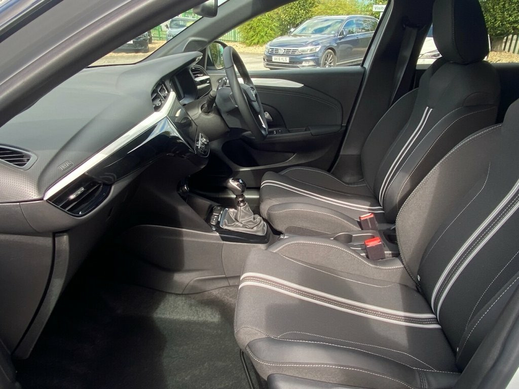 Thompson and Smith are delighted to offer this recently registered Special Edition Corsa 'YES' 1.2 Turbo (100ps) that comes with delivery mileage only. Taking the eye immediately with its distinctive black 'vizor' grille that incorporates the headlamps & black griffin badge our car comes with 16" diamond cut alloy wheels, dark tinted rear windows, black roof, mirror covers & rear spoiler that is all complimented by the contrasting Contour White paintwork for that sporty look. Must have features include the heated front seats & heated steering wheel plus DAB radio, Bluetooth, apple car play & android support on the easy to use 10"colour touchscreen Multi-Media infotainment system that is complimented by the digital instrument cluster in the drivers eyeline. Other big features includes air con, cruise control, auto lights & wipers plus big safety features that includes forward collision alert, hill start assist, lane departure warning, high beam assist, automatic emergency braking, rear parking sensors even a driver drowsiness alert! This car will come with the balance of the three year Vauxhall Manufacturer Nationwide warranty. Part exchange, full finance facilities & nationwide delivery can be arranged. Please note that vehicle specifications, features & designs may vary due to Model Year changes. We strive for accuracy but variations may occur. Please confirm details with our sales team or showroom at the time of purc 16in Alloy Wheels - Diamond-Cut Hi-Gloss, 7in Digital Colour Instrument Cluster, ABS - Anti-Lock Braking System, Air Conditioning includes Air Recirculat, Airbag - Drivers, Airbags - Front Passenger, Airbags - Front Seat Side-Impact, Airbags - Full Size Curtain, Automatic Anti-Dazzle Rear-View Mirror, Automatic Lighting Control, Black Door Mirror Housings, Black Griffin Logo and Vizor Frame, Black Headliner, Black Lower Side Window Mouldings, Black Roof and A-Pillars, Body-Colour Door Handles - Front and Rea, Cruise Control with Intelligent Speed Li, Dark Tinted Rear Side and Tailgate Windo, Deactivation Switch for Front Passengers, Door Mirrors - Electrically Adjustable-H, Drag Torque Contr