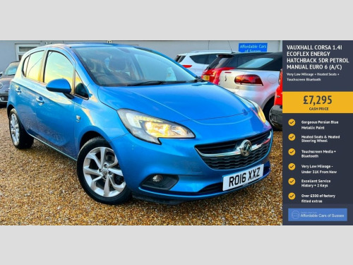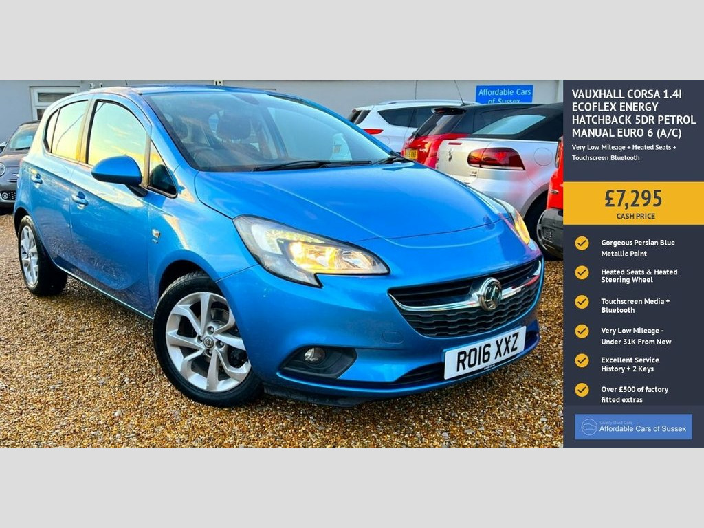 A very low mileage Vauxhall Corsa Energy with less than 31,000 miles from new and looking great in Persian Blue metallic with alloy wheels. This lovely example comes with two keys and excellent service history with 7 services stamped in the handbook. Very well equipped it features heated front seats and a heated steering wheel for those cold mornings, touchscreen media with phone projection, bluetooth phone and more, air conditioning, automatic headlights and more. All in all a very nice example with excellent history and very low mileage. Top 5 Reasons to buy this car; 1; Stunning Persian Blue Paintwork 2; Very Low Mileage & Excellent Service History 3; Touchscreen With Bluetooth Connectivity 4; Free Warranty included with no admin or hidden fee's - Fully transparent sales process 5; Bought from a local trusted family Dealer with over 60+ years experience Persian Blue, 12V Electrical Accessory Socket, 16in Alloy Wheels, ABS - Anti-Lock Braking System, Adjustable Outer Rear Seat Head Restrain, Adjustable Speed Limit Audible Warning, Air Conditioning, Airbags - Front Seat Side-Impact, Anti-Submarining Ramps in All Seats, Black Foil on B-Pillar, Bonnet - Headlight - Wiper Structure, Central Front Courtesy Light, Central Rear Courtesy Light, Child Proof Locks on Rear Doors, Chrome Effect Front Grille Bar, Chrome Effect Gear Knob Trim, Chrome Effect Handbrake Button, Chrome Effect Interior Door Handles, City Mode Button - Provides Lighter Stee, Comfort Front Seats, Cruise Control with Speed Limiter, Daytime Running Lights - LED, Deactivation Switc