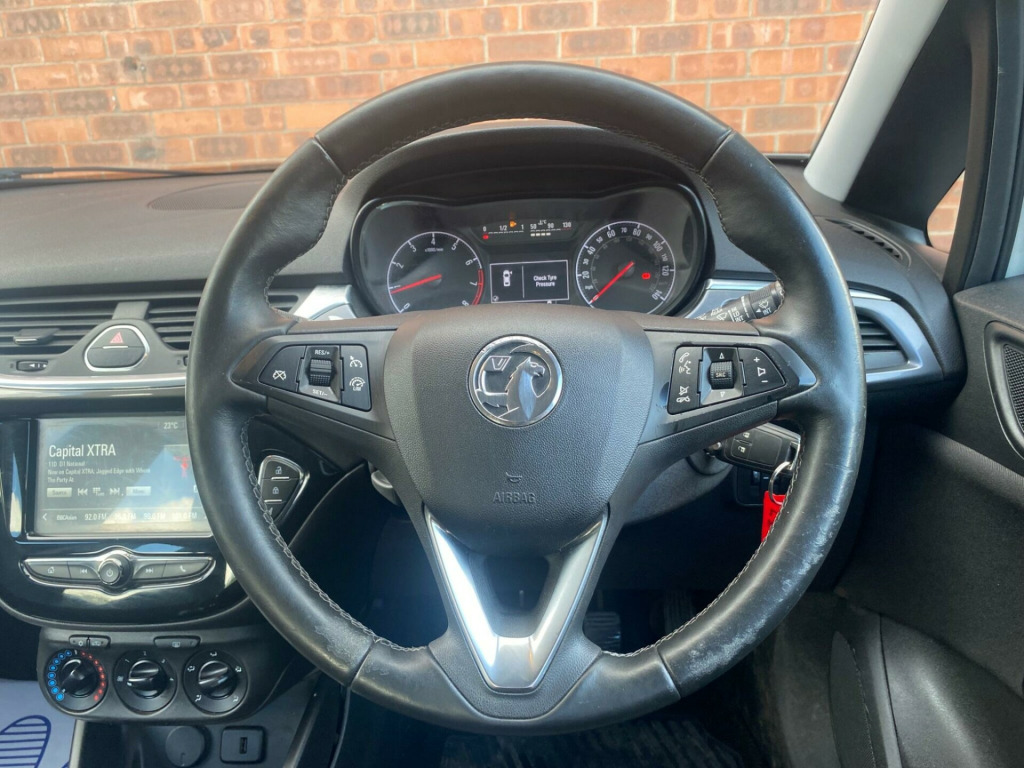 With only one previous owner, this 2018 Vauxhall Corsa 1.4 i Energy is a great choice. The Corsa, in its Energy trim, is powered by a 1.4L petrol engine and meets Euro 6 emission standards. You can drive with confidence, thanks to a clear vehicle history check.This Corsa includes the R4.0 IntelliLink touch-screen infotainment system with Bluetooth, air conditioning, and a Winter Pack with heated seats and steering wheel. The Sight and Light Pack One ensures convenience with automatic headlights. The Corsa boasts impressive fuel economy, achieving up to 55 mpg, which means lower running costs compared to similar vehicles. It also falls into a low insurance group, offering another financial advantage. v electrical accessory socket, 16in alloy wheels - 8 spoke, abs - anti-lock braking system, adjustable rear seat backrest, air conditioning, airbags - front seat side-impact, anti-submarining ramps in all seats, automatically dimming anti-dazzle rear-view mirror, black door panels with black atlantis cloth inserts, black foil on b-pillar, bonnet - headlight - wiper structure, central facia display, central front courtesy light, central rear courtesy light, child proof locks on rear doors, chrome effect front grille bar, chrome effect interior door handles, city mode button - provides lighter steering at parking speeds, comfort front seats, cruise control with speed limiter, daytime running lights - led, deactivation switch for front passengers airbag, digital fuel gauge with low fuel level warning light, digital water temperature gauge, dipping rear-view mirror, door handles - body coloured, door-to-door illumination, drinks holder in centre console, driver information centre - white graphics on black background, driver information display, drivers dual-stage airbag, drivers and front passengers sunvisors, drivers and front passengers tiltable assist handles, drivers and front passengers vanity mirrors with flip-up cover, esp - electronic stability programme, electric headlight beam levelling, electrically adjustable-heated door mirrors wide-angle on drivers side, electrically operated front windows with safety autoreverse and one-touch facility, electronically protected audio equipment, energy absorbing steering column, engine deadlock immobiliser, fade up-fade down courtesy lights, four adjustable facia vents, front anti-roll bar, front door pockets, front fog lights with black surround, front map reading lights, front passengers dual-stage airbags, front seatbelt force limiters, front seatbelt pretensioner system, front and rear seatbelt unfastened audible warning and warning light, full length curtain airbags, gas pressure dampers, glovebox with lid, halogen headlights, heated rear screen with automatic timed cut-off, heated windscreen, height adjustable front seatbelts, height-adjustable front seat head restraints, height-adjustable and removable outer rear seat head restraints, high level led centre brake light, isofix child seat mountings incorporating top tether anchor points located on outer rear seats, illuminated luggage area, instrument panel light dimmer, interior tailgate handle, intermittent rear window wash-wipe, key left in ignition audible warning, laminated windscreen, lights on audible warning, load restraint lashing eyes, locking wheel bolts for alloy wheels, luggage compartment cover, manually foldable door mirrors, one-piece folding rear seat, pedal release system, r4.0 intellilink touch-screen infotainment system, rain sensitive windscreen wipers, rake and reach adjustable steering, rear door pockets, rear fog lights, rear reading lights, reinforced passenger safety cell, remote control central locking, rev counter, rhutenium facia with chrome-effect inserts, shift up indication light, side impact protection beams, side window demist vents, sight and light pack one, six speakers, speed-sensitive electric power-assisted steering, speedometer, steering wheel - three-spoke design - leather covered - satin chrome-effect bezel, steering wheel mounted audio controls, storage box on drivers side lower facia, stowage facility for luggage compartment cover behind rear seats, tpms - tyre pressure monitoring system, three inertia-reel lap and diagonal rear seatbelts, tinted windows, twin gas assisted tailgate struts, two rear passengers tiltable assist handles, two speed windscreen wipers with variable intermittent wipe, upper and lower bumper design, vin - visible vehicle identification number, welcome lighting, windscreen demist vents, winter pack