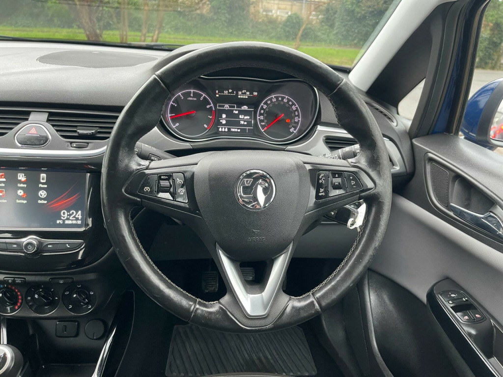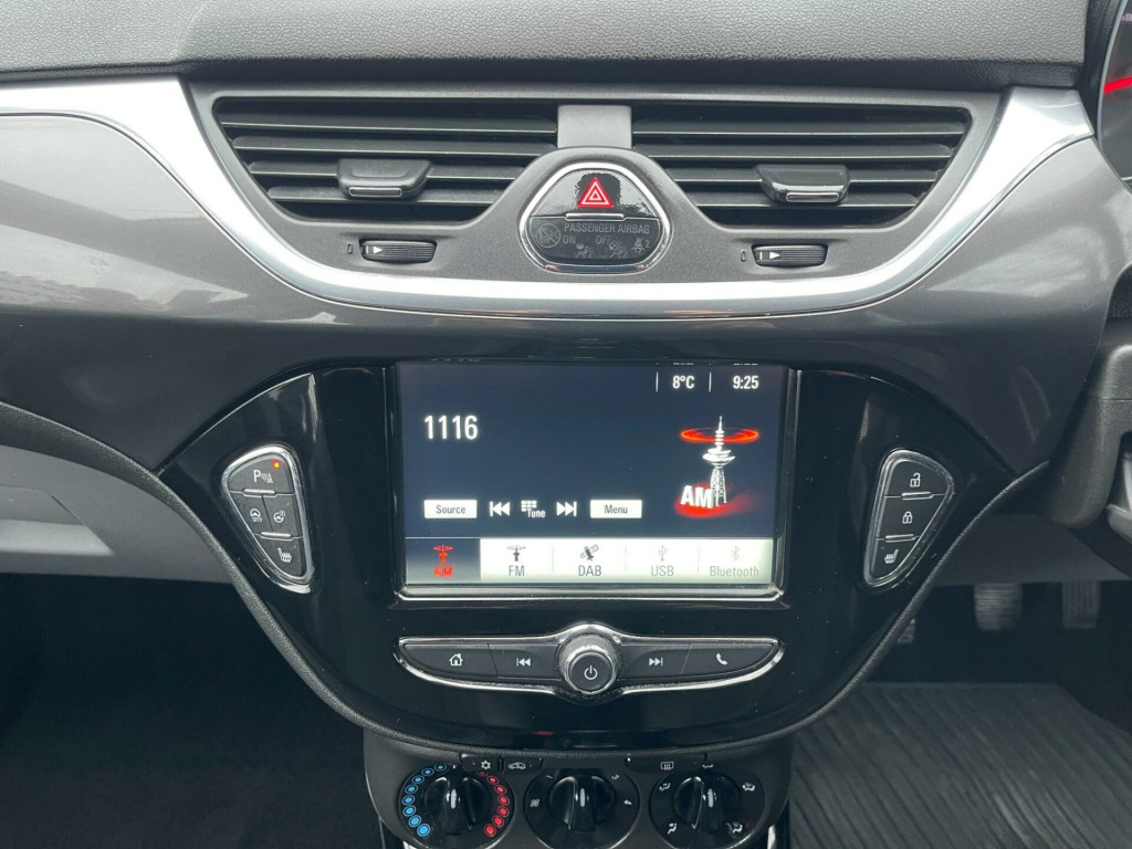 Excellent Condition, Just Serviced, This 2018 Vauxhall Corsa i SE is a great choice for those seeking an economical and well equipped hatchback. Powered by a 1.4 litre petrol engine and meeting Euro 6 emissions standards, this model offers a compelling blend of efficiency and practicality. Inside, you'll find the comfort of a Winter Pack, which includes heated seats and a heated steering wheel, perfect for colder mornings. The Sight and Light Pack One ensures automatic headlights are activated when needed, while the R4.0 IntelliLink touch screen infotainment system with Bluetooth connectivity keeps you entertained and connected. Comfort is further enhanced by air conditioning, and parking is made simpler with front and rear parking distance sensors.This Vauxhall Corsa stands out with its impressive fuel economy, achieving up to 55 miles per gallon, which indicates it is more efficient than many other vehicles in its class. Furthermore, its low insurance group rating suggests that running costs will be kept to a minimum, making it an attractive option for a wide range of drivers. v electrical accessory socket, 16in alloy wheels, 60-40 split-folding rear seat back, abs - anti-lock braking system, adjustable rear seat backrest, air conditioning, airbags - front seat side-impact, alloy effect front door sill covers with vauxhall lettering, anti-submarining ramps in all seats, automatically dimming anti-dazzle rear-view mirror, black door panels with black morrocana inserts, black foil on b-pillar, body-colour door mirrors with black mirror frames, bonnet - headlight - wiper structure, central facia display, central front courtesy light, central rear courtesy light, child proof locks on rear doors, chrome effect front grille bar, chrome effect interior door handles, chrome-effect lower side window mouldings, city mode button - provides lighter steering at parking speeds, comfort front seats, cruise control with speed limiter, daytime running lights - led, deactivation switch for front passengers airbag, digital fuel gauge with low fuel level warning light, digital water temperature gauge, dipping rear-view mirror, door handles - body coloured, door-to-door illumination, drinks holder in centre console, driver information centre - white graphics on black background, driver information display, drivers dual-stage airbag, drivers and front passengers sunvisors, drivers and front passengers tiltable assist handles, drivers and front passengers vanity mirrors with flip-up cover, esp - electronic stability programme, electric headlight beam levelling, electrically adjustable-heated door mirrors wide-angle on drivers side, electrically operated front windows with safety autoreverse and one-touch facility, electronically protected audio equipment, energy absorbing steering column, engine deadlock immobiliser, fade up-fade down courtesy lights, four adjustable facia vents, front anti-roll bar, front door pockets, front door sill covers - alloy-effect, front fog lights with chrome effect surround, front map reading lights, front passengers dual-stage airbags, front seatbelt force limiters, front seatbelt pretensioner system, front and rear parking distance sensors, front and rear seatbelt unfastened audible warning and warning light, full length curtain airbags, gas pressure dampers, glovebox with lid, halogen headlights, heated rear screen with automatic timed cut-off, heated windscreen, height adjustable front seatbelts, height-adjustable front seat head restraints, height-adjustable and removable outer rear seat head restraints, high level led centre brake light, isofix child seat mountings incorporating top tether anchor points located on outer rear seats, illuminated luggage area, instrument panel light dimmer, interior tailgate handle, intermittent rear window wash-wipe, key left in ignition audible warning, laminated windscreen, lights on audible warning, load restraint lashing eyes, locking wheel bolts for alloy wheels, luggage compartment cover, manually foldable door mirrors, multi-function trip computer, pedal release system, r4.0 intellilink touch-screen infotainment system, rain sensitive windscreen wipers, rake and reach adjustable steering, rear door pockets, rear fog lights, rear reading lights, reinforced passenger safety cell, remote control central locking, rev counter, rhutenium facia with chrome-effect inserts, shift up indication light, side impact protection beams, side window demist vents, sight and light pack one, six speakers, speed-sensitive electric power-assisted steering, speedometer, steering wheel - three-spoke design - leather covered with accent stitching - satin chrome-effect bezel, steering wheel mounted audio controls, storage box on drivers side lower facia, storage pockets on front seat backs, stowage facility for luggage compartment cover behind rear seats, tpms - tyre pressure monitoring system, three inertia-reel lap and diagonal rear seatbelts, tinted windows, twin gas assisted tailgate struts, two rear passengers tiltable assist handles, two speed windscreen wipers with variable intermittent wipe, upper and lower bumper design, vin - visible vehicle identification number, vauxhall onstar, welcome lighting, windscreen demist vents, winter pack