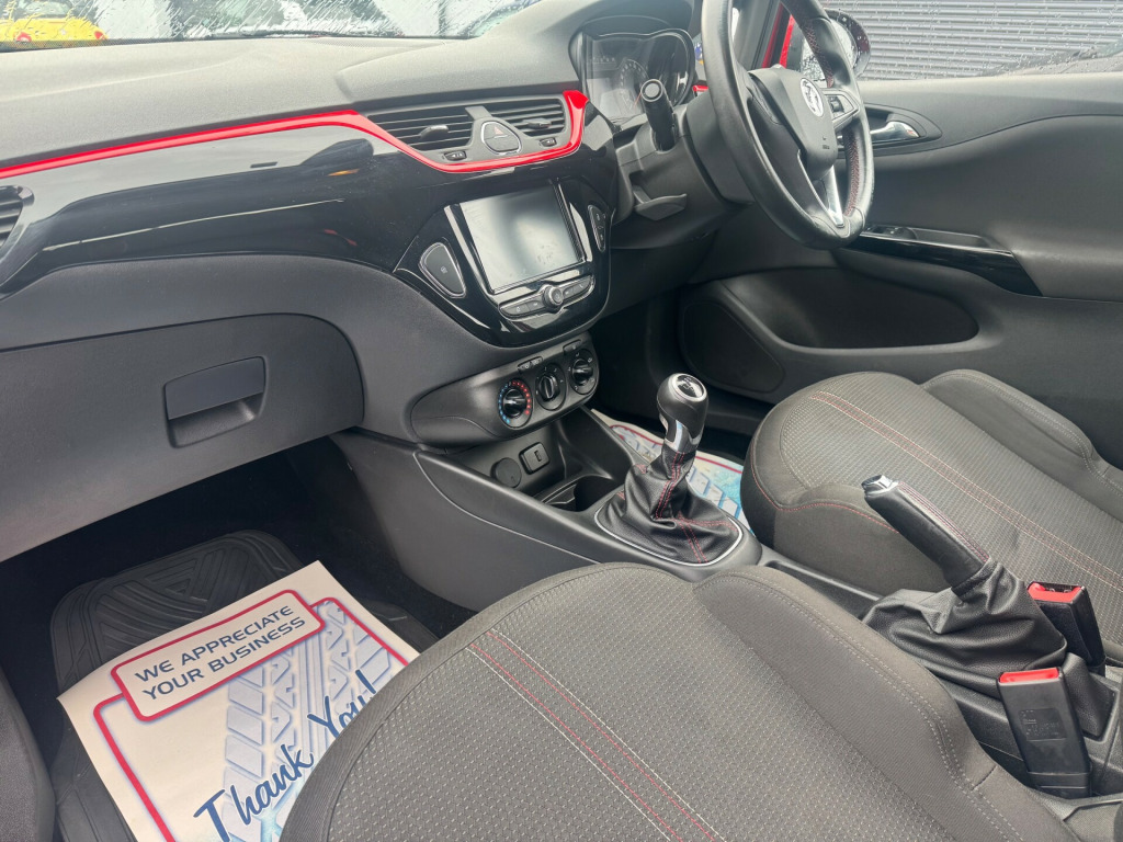 This 2017 Vauxhall Corsa 1.4i ecoTEC SRi Hatchback with 3 doors and 5 seats has only done 76140 miles and is powered by Petrol. It comes with a manual transmission and Euro 6 (75 ps) engine. and it is ULEZ compliant. The sleek hatchback features 16in Alloy Wheels, Black Foil on B-Pillar, and 12V Electrical Accessory Socket. Inside, it boasts a R4.0 IntelliLink Touch-Screen Infotainment System with Six Speakers for an enjoyable driving experience. This well-maintained, fuel-efficient car is a perfect choice for someone in search of a reliable and stylish vehicle. v electrical accessory socket, r4.0 intellilink touch-screen infotainment system, six speakers, 16in alloy wheels - four twin-spoke - black, black foil on b-pillar, chrome effect front grille bar, door handles - body coloured, electrically adjustable-heated door mirrors wide-angle on drivers side, electrically operated front windows with safety autoreverse and one-touch facility, heated rear screen with automatic timed cut-off, heated windscreen, intermittent rear window wash-wipe, laminated windscreen, locking wheel bolts for alloy wheels, manually foldable door mirrors, sight and light pack one, tinted windows, upper and lower bumper design, abs - anti-lock braking system, airbags - front seat side-impact, bonnet - headlight - wiper structure, child proof locks on rear doors, deactivation switch for front passengers airbag, drivers dual-stage airbag, esp - electronic stability programme, electronically protected audio equipment, energy absorbing steering column, engine deadlock immobiliser, front anti-roll bar, front passengers dual-stage airbags, front seatbelt force limiters, front seatbelt pretensioner system, front and rear seatbelt unfastened audible warning and warning light, full length curtain airbags, height adjustable front seatbelts, isofix child seat mountings incorporating top tether anchor points located on outer rear seats, pedal release system, rear fog lights, reinforced passenger safety cell, remote control central locking, side impact protection beams, three inertia-reel lap and diagonal rear seatbelts, vin - visible vehicle identification number, adjustable rear seat backrest, air conditioning, anti-submarining ramps in all seats, automatically dimming anti-dazzle rear-view mirror, black door panels with black atlantis cloth inserts, central front courtesy light, central rear courtesy light, chrome effect interior door handles, dipping rear-view mirror, drinks holder in centre console, driver information centre - white graphics on black background, drivers and front passengers sunvisors, drivers and front passengers tiltable assist handles, drivers and front passengers vanity mirrors with flip-up cover, easy entry front seats with memory function, fade up-fade down courtesy lights, four adjustable facia vents, front door pockets, front map reading lights, front passengers underseat storage tray, glovebox with lid, height-adjustable front seat head restraints, height-adjustable and removable outer rear seat head restraints, illuminated luggage area, instrument panel light dimmer, interior tailgate handle, load restraint lashing eyes, luggage compartment cover, one-piece folding rear seat, rain sensitive windscreen wipers, rake and reach adjustable steering, rear bottle holders, side window demist vents, sports-style front seats, steering wheel - three-spoke design - leather covered with accent stitching - satin chrome-effect bezel, steering wheel mounted audio controls, storage box on drivers side lower facia, stowage facility for luggage compartment cover behind rear seats, twin gas assisted tailgate struts, two speed windscreen wipers with variable intermittent wipe, welcome lighting, windscreen demist vents, central facia display, city mode button - provides lighter steering at parking speeds, cruise control with speed limiter, digital fuel gauge with low fuel level warning light, digital water temperature gauge, driver information display, gas pressure dampers, key left in ignition audible warning, multi-function trip computer, rev counter, shift up indication light, speed-sensitive electric power-assisted steering, speedometer, tpms - tyre pressure monitoring system, daytime running lights - led, door-to-door illumination, electric headlight beam levelling, front fog lights with chrome effect surround, halogen headlights, high level led centre brake light, lights on audible warning
