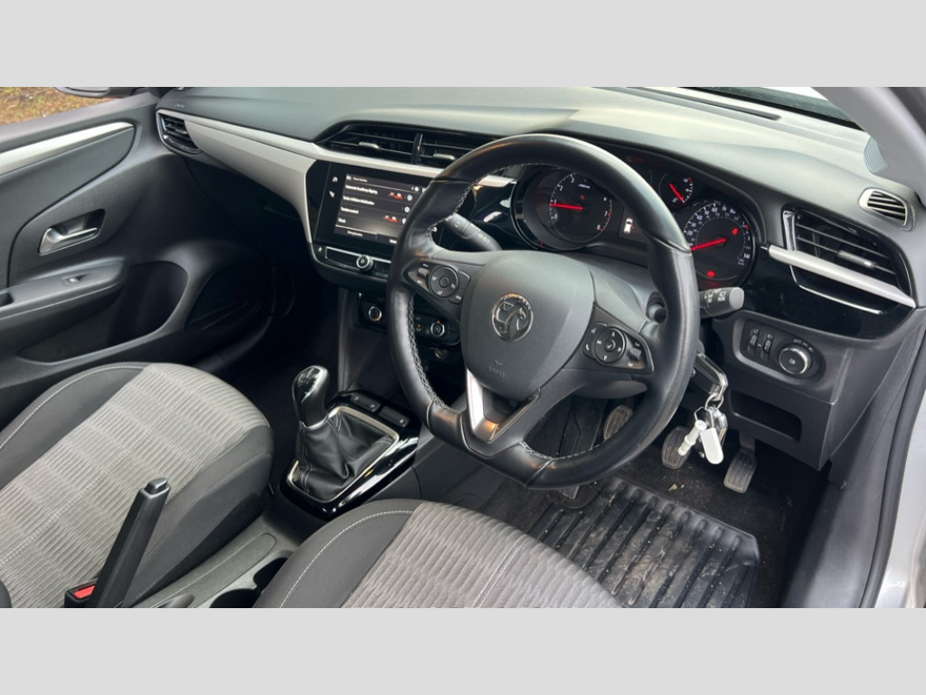 Vauxhall Corsa 1.2 Design 5dr 3.5" colour driver instrument cluster (DIC), Apple car play/Android Auto, Bluetooth mobile phone portal, Central facia display with digital clock, outside air temperature and audio information, Cruise control with intelligent speed limiter, Driver drowsiness alert system, eCall emergency call system, Engine oil life indicator, Front camera system, Front pedestrian detection BASIS, Infotainment remote controls right side of steering wheel, telephone buttons on left side, Instrumentation - Speedometer, rev counter, low fuel gauge warning light + water temperature gauge warning light, shift up/down indicate light, Lane departure warning with lane assist, Lights on audible warning, Multi function trip computer - Trip odometer, vehicle range, average speed and fuel economy, instantaneous fuel economy and driving time, RDS with traffic programme, Service indicator, Speed sensitive power steering, Speed sign recognition, Start/stop system, Electronic returnless fuel system, Petrol Particulate Filter, Under body shield for aero, AM/FM stereo radio, Bluetooth A2DP audio streaming function (Advanced audio distribuition profile), DAB Digital radio, Six speakers, Steering wheel audio, phone and cruise controls, USB with iPod control, Black lower side window mouldings, Body colour door handles, Body colour door mirrors, Body colour front and rear bumpers, Body colour roof and A pillar, Bonnet/headlight/wiper structure, Centre rear brake lights, Chrome logo bar, Electrically adjustable and heated door mirrors, Electrically operated front and rear windows with safety auto reverse and one touch up/down facility, Flexible roof mounted aerial, Glazed tailgate and heated rear window with wash/wipe facility, Hazard warning lights, Headlamps for left side traffic, High beam assist, Inside rear view mirror tiltable day/night folder, LED daytime running lights, LED Headlights, Manual headlamp level control, Rear fog lamp, Rear reversing lights, Rear side wing doors, Solar absorbing front and rear side windows and tailgate, Solar heat absorbing windscreen and windows, Third brake light, Two speed windscreen wipers with variable intermittent wipe, Upper and lower bumper design, Windscreen and side window demist vents, 12V power sockets, 2 way adjustment front driver and co-driver passive headrest, 3 seat bench in 2nd row, 3 spoke flat bottom leather steering wheel with satin chrome effect bezel, 4 speed fan with illuminated controls, 4 way manual co-driver seat reach fore/aft, backrest upright/recline, 6 way manual adjustable driver seat height up/down, reach fore/aft, backrest upright/recline, 60/40 split folding rear seat, Air conditioning with air recirculation facility, Cabin particulate filter - removes dust, airborne particles and pollen, Comfort front seats, Driver/passenger sunvisors with vanity mirrors + covers, Four adjustable facia vents, Fresez marvel cloth upholstery, Front cupholder, Front map reading lights, Height adjustable head restraints, Illuminated glovebox with lid, Illuminated load compartment trunk, Interior courtesy light, Internal chrome door handles, IP plastic insert single piece, Jet black door panels on door trim, Luggage compartment lighting, Mistral fabric side bolsters and surrounds, Polyurethane gear knob/lever, Reach and rake adjustable steering column, Rear cupholder, Right hand drive (RHD), Single dome lamp with dual front reading lamps, Single front passenger seat, Two litre open door pockets, 3 rear 3 point seatbelts, Anti-lock braking system (ABS), Automatic emergency braking with pedestrian detection, Cornering brake control, Deactivation switch for front passenger's airbag, Drag torque control, EBD - Electronic brakeforce distribution, Electrical child lock system in rear door latch, Electronic Stability Programme (ESP), Emergency brake assist, Forward collision alert, Front seatbelt unfastened audible warning and warning light, Hill hold and start system, Inertia reel lap and diagonal seatbelts for all seats, ISOFIX child seat mountings incorporating top tether anchor points located on second row rear seats, Manual handbrake, Seatbelt pretensioners, Single tone horn, Six airbags - Driver's dual stage airbag/front passenger's dual stage airbag/front seat side impact airbags/full size curtain airbags, Straight line stability control, Traction control, Tyre deflation detection system, Tyre pressure monitoring system, 2 keys one folding with integral remote, Electronically protected audio equipment, Engine deadlock and immobiliser, Freewheeling door locks, Locking wheel nuts, Remote control central locking, Remote control central locking activation switch on driver door, Remote locking fuel filler flap, Steering column lock, Visible vehicle identification number, Mistral facia, 16" Silver 8 spoke alloy wheels