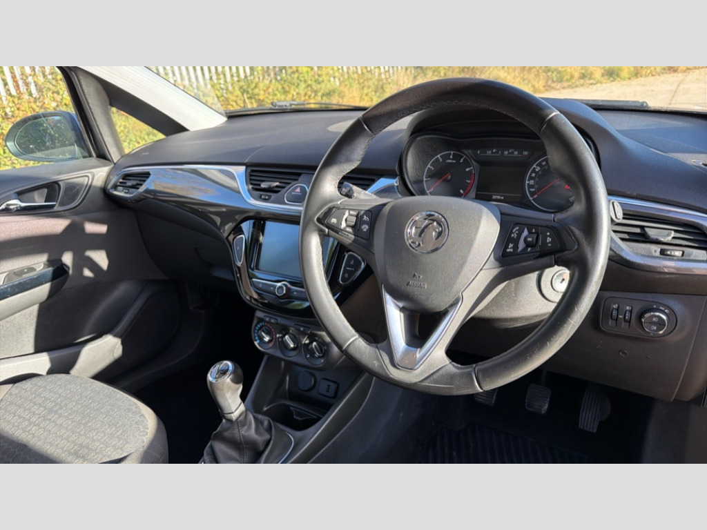 Vauxhall Corsa 1.4 Design 5dr Apple car play/Android Auto, Central facia display, Cruise control + speed limiter, Digital fuel gauge with low fuel warning light, Digital water temperature gauge, Electric speed sensitive power steering, Exterior temperature gauge, Lights on audible warning, Rev counter, Service indicator, Speed warning indicator, Speedometer, Trip computer, White graphics on black background, Front anti roll bar, Steering wheel mounted audio/cruise controls, Black foil on B-pillars, Body colour bumpers, Body colour door handles, Body coloured door mirrors, Chrome front grille, Dipping rear view mirror, Door to door illumination, Electric adjustable/manual folding door mirrors (wide angle on driver's side), Electric headlight beam leveling, Electrically operated front windows with safety auto reverse/one touch facility, Front fog lights with black surround, Halogen headlights, Hazard warning lamps, Headlamp levelling, Heated rear window, Heated windscreen, High level LED centre brake light, Intermittent rear wash/wipe, Laminated windscreen, LED daytime running lights, Rear fog lights, Rear wiper, Side window demist vents, Two speed windscreen wipers with variable intermittent wipe, Welcome lighting, Windscreen demist vents, 12V electrical accessory socket in front, 3 spoke steering wheel, Air conditioning, Anti submarining ramps in all seats, Centre console with cupholders, Chrome gear knob, Chrome interior door handles, Cloth upholstery, Comfort front seats, Driver's and front passenger's sunvisors, Driver's and front passenger's tiltable assist handles, Driver's and passenger's vanity mirrors with flip up cover, Driver's vanity mirror, Four adjustable facia vents, Front courtesy lights, Front door pockets, Front map reading lights, Front seat belt pre-tensioners with load limiters, Glovebox with lid, Grab handles, Height adjustable driver's seat, Height adjustable front headrests, Height adjustable rear head restraints with adjustable backrest, Illuminated luggage compartment, Instrument panel light dimmer, Interior tailgate handles, Isofix child seat mounting points on outer rear seats, Load restraining lashing points, Luggage compartment cover, Multi function steering wheel, Pollen filter, Reach + rake adjustable steering column, Rear courtesy lights, Rear door pockets, Rear reading lights, Reclining front seats, Storage box on driver's side lower facia, Stowage facility for luggage compartment cover behind rear seats, Twin gas assisted tailgate struts, Anti-lock braking system (ABS), Brake assist function, Electronic brake force distribution, Electronic Stability Programme, Energy absorbing steering column, Front and rear seatbelt reminder, Front and rear seatbelt unfastened audible warning and warning light, Front seatbelt force limiters, Gas pressure dampers, Height adjustable front seatbelts, Hill start assist, Manual passenger airbag deactivation function, Pedal release system, Rear child proof door locks, Reinforced passenger safety cell, Side impact protection beams, Six airbags - Driver's dual stage airbag/front passenger's dual stage airbag/front seat side impact airbags/full size curtain airbags, Three 3 point rear seatbelts, Three inertia reel lap/diagonal seatbelts, Traction control, Tyre pressure monitoring system, Electronically protected audio, Engine Immobiliser & Deadlocks, Key left in ignition audible warning, Locking wheel bolts, Remote control central locking, Visible vehicle identification number, Rhutenium facia with chrome effect inserts