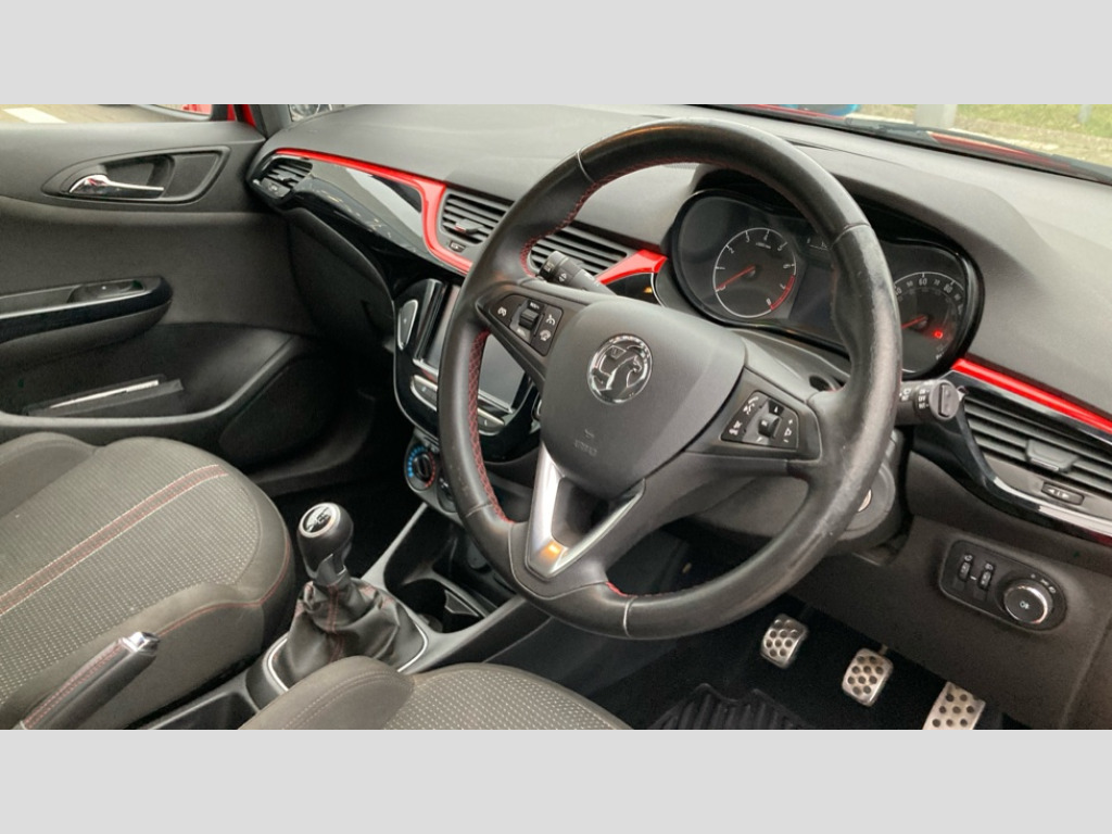 Vauxhall Corsa 1.4 Sport 5dr [AC] Apple car play/Android Auto, Central facia display, Cruise control + speed limiter, Digital fuel gauge with low fuel warning light, Digital water temperature gauge, Electric speed sensitive power steering, Exterior temperature gauge, Lights on audible warning, Multi function trip computer, Rev counter, Service indicator, Speed warning indicator, Speedometer, White graphics on black background, Front anti roll bar, Steering wheel mounted audio/cruise controls, Black foil on B-pillars, Body colour bumpers, Body colour door handles, Body coloured door mirrors, Chrome front grille, Dark tinted rear glass, Dipping rear view mirror, Door to door illumination, Electric adjustable/manual folding heated door mirrors (wide angle on driver's side), Electric headlight beam leveling, Electrically operated front windows with safety auto reverse/one touch facility, Halogen headlights, Hazard warning lamps, Headlamp levelling, Heated rear window, Heated windscreen, High level LED centre brake light, Intermittent rear wash/wipe, Laminated windscreen, LED daytime running lights, Privacy glass, Rear fog lights, Rear wiper, Side window demist vents, Two speed windscreen wipers with variable intermittent wipe, Welcome lighting, Windscreen demist vents, 12V electrical accessory socket in front, 3 spoke steering wheel, Alloy sports pedals, Anti submarining ramps in all seats, Centre console with cupholders, Chrome gear knob, Chrome interior door handles, Driver's and front passenger's sunvisors, Driver's and front passenger's tiltable assist handles, Driver's and passenger's vanity mirrors with flip up cover, Driver's vanity mirror, Four adjustable facia vents, Front courtesy lights, Front door pockets, Front map reading lights, Front seat belt pre-tensioners with load limiters, Glovebox with lid, Grab handles, Height adjustable driver's seat, Height adjustable front headrests, Height adjustable rear head restraints with adjustable backrest, Illuminated luggage compartment, Instrument panel light dimmer, Interior tailgate handles, Isofix child seat mounting points on outer rear seats, Lace cloth trim, Load restraining lashing points, Luggage compartment cover, Multi function steering wheel, Pollen filter, Reach + rake adjustable steering column, Rear courtesy lights, Rear door pockets, Rear reading lights, Reclining front seats, Sports front seats, Storage box on driver's side lower facia, Stowage facility for luggage compartment cover behind rear seats, Twin gas assisted tailgate struts, Anti-lock braking system (ABS), Brake assist function, Electronic brake force distribution, Electronic Stability Programme, Energy absorbing steering column, Front and rear seatbelt reminder, Front and rear seatbelt unfastened audible warning and warning light, Front seatbelt force limiters, Gas pressure dampers, Height adjustable front seatbelts, Hill start assist, Manual passenger airbag deactivation function, Pedal release system, Rear child proof door locks, Reinforced passenger safety cell, Side impact protection beams, Six airbags - Driver's dual stage airbag/front passenger's dual stage airbag/front seat side impact airbags/full size curtain airbags, Three 3 point rear seatbelts, Three inertia reel lap/diagonal seatbelts, Traction control, Tyre pressure monitoring system, Electronically protected audio, Engine Immobiliser & Deadlocks, Key left in ignition audible warning, Locking wheel bolts, Remote control central locking, Visible vehicle identification number, 16" 4 twin spoke silver alloy wheels